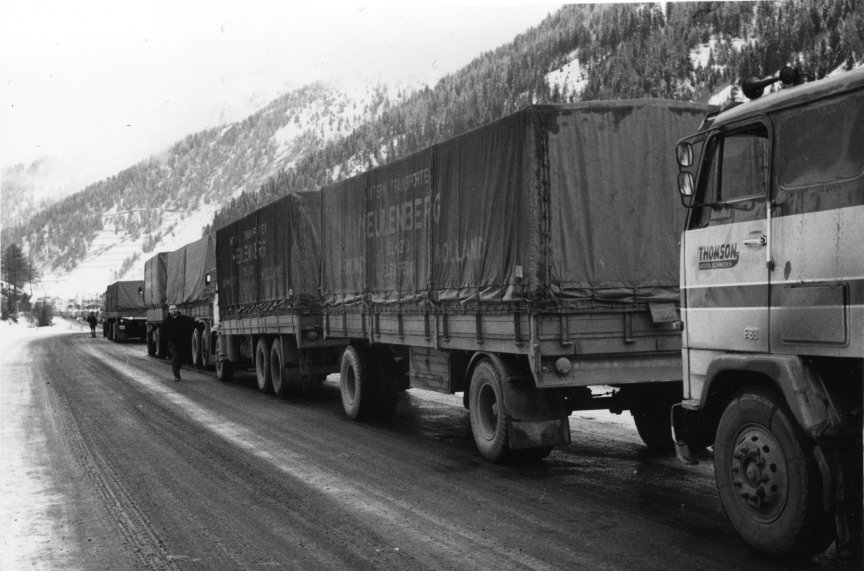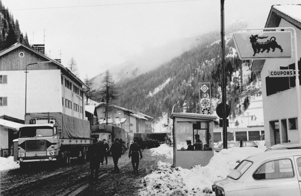Köerna för att passera gränsen var alltid enorma. Betalade man inte mutor till de Italienska tullarna så kunde man få vänta i flera dygn. Ca 500 kr (mycket pengar 1968) reducerade väntetiden till 3 - 4 timmar. Förmodar att detta är på hemvägen med last av 24 ton marmor från Carrara.