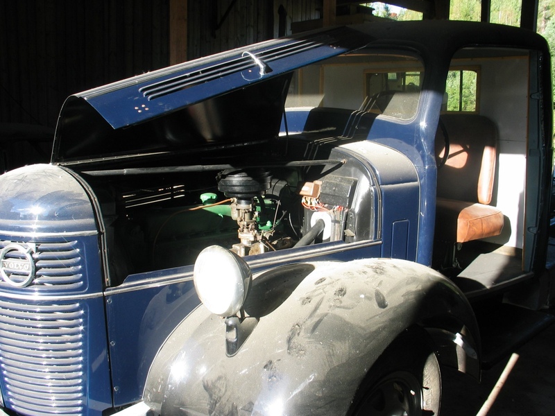 John Sjöbom stöllet håller på med det mesta från mopeder till lastbilar. Den fina PV:n från 1947 kom ej med på foto här. Två Volvo lastbilar är på gång varav den ena så gott som färdig, det fattas bara flaket. Bilen är en bensinare med Rydsboggie utan bromsar. På gång är också en diesel vilken syns på de sista bilderna. Dessa bilder togs tillsammans med lite andra bilder som finns under "Objekt" "Höst 05".