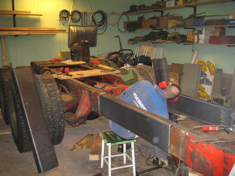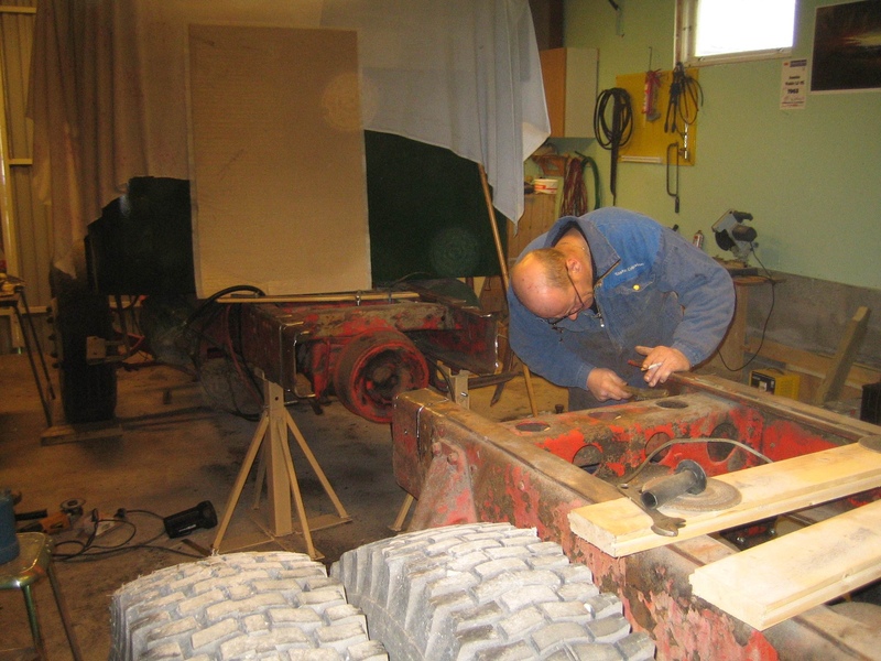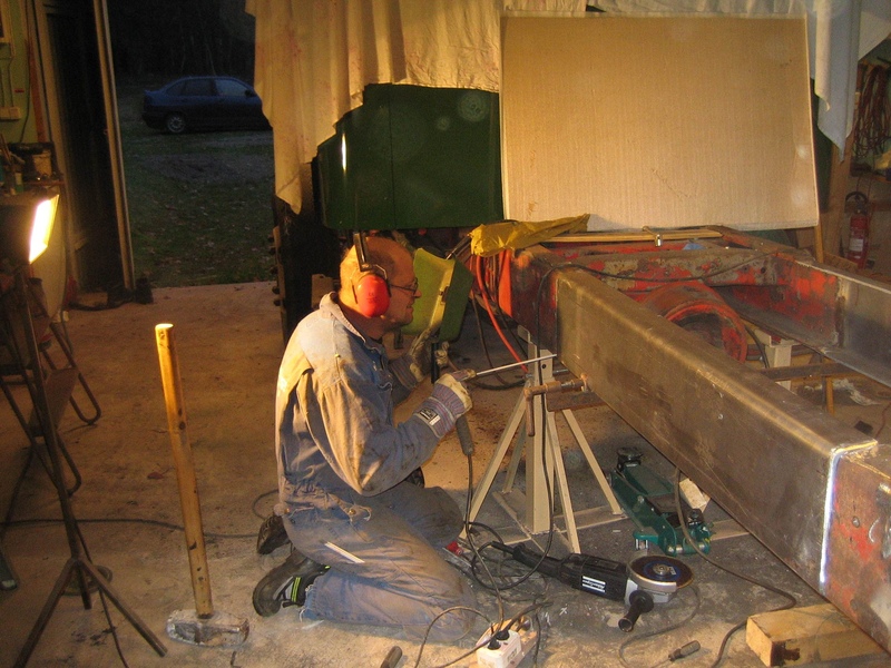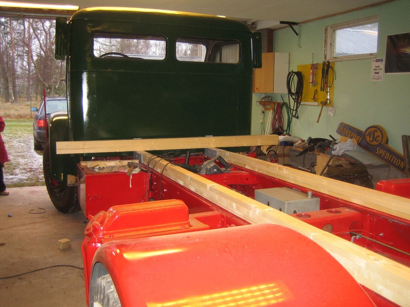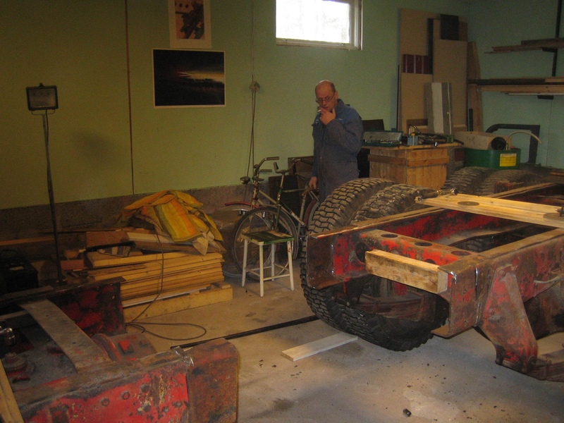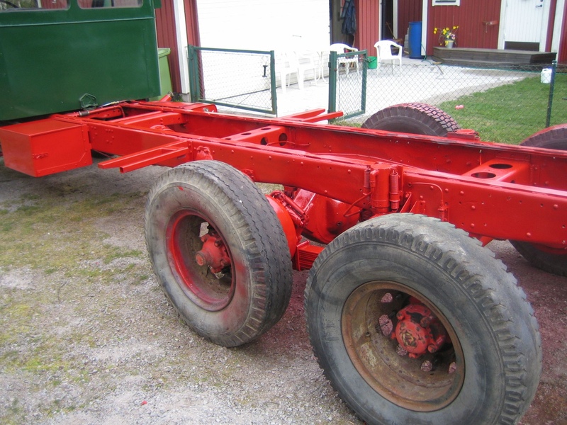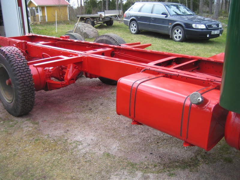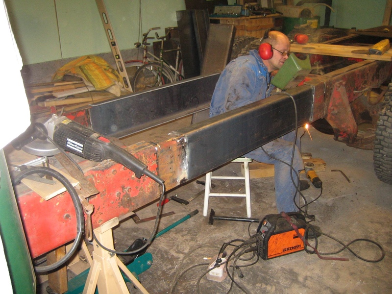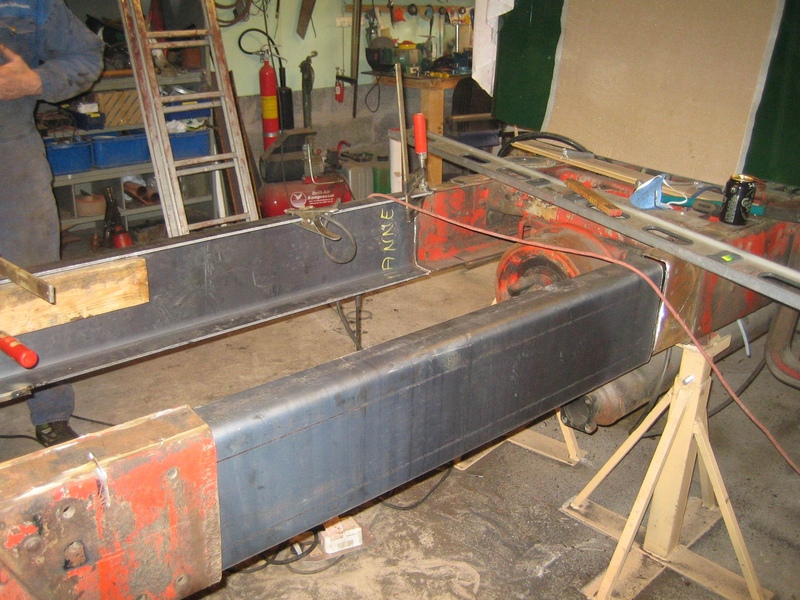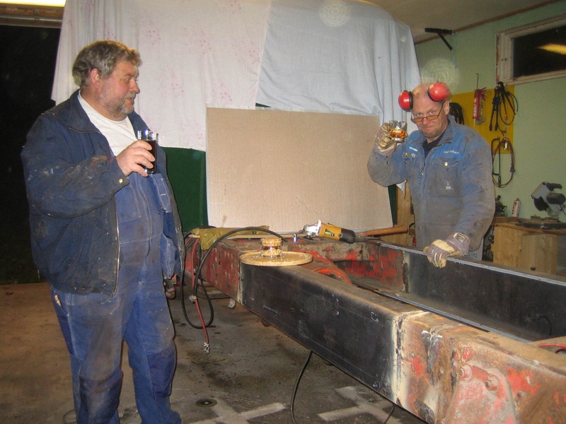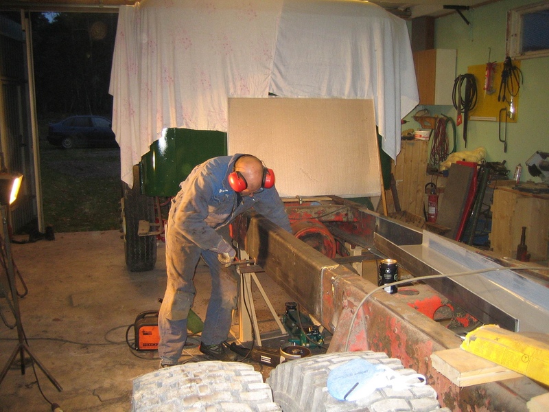 Jul/nyår 2008/2009, dags för påbyggnad. Observera dragbalken med fästen för säkerhetskedjor. Fabrikat Br Forss.