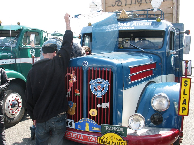 Lördagen den 5 maj kördes årets Tunga Rallyt Väst. Vädret kanske inte var det mest strålande men dock tillräckligt förträffligt för ett 10-milapass utan climatanläggning. Två av kontrollerna krävde lite "upp till bevis" att man verkligen varit aktiv i det tunga sammanhanget, nämligen dels att ställa höger framhjul i precis mitten på en planka och dels att uppskatta aktuellt framaxeltryck. Själv missade jag plankan helt och det kändes lite "skämmit" måste jag medge. Nåja vi som deltog hade hur som helst kul och vid målet besöktes det alltid lika intressanta Volvo museet.