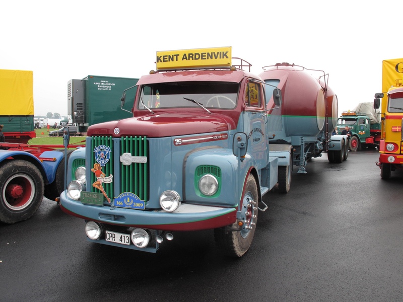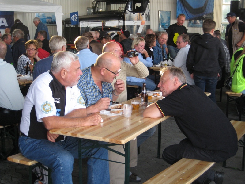 Pärlrallyt 2009 var det 10:onde i ordningen och arrangörerna hade därför ordnat med lite festligheter kvällen före. Scania i Hbg upplät sin utställningshall för middag och underhållning. Feststämningen var mycket god och det hela var mycket lyckat sånär som på lite för hög ljudnivå för yrkesskadade gamla chaufförsöron. För oss som måste fly undan ljudet så var kvällen perfekt för att beskåda och diskutera de många nya bilarna som fanns utanför på Scanias parkering.