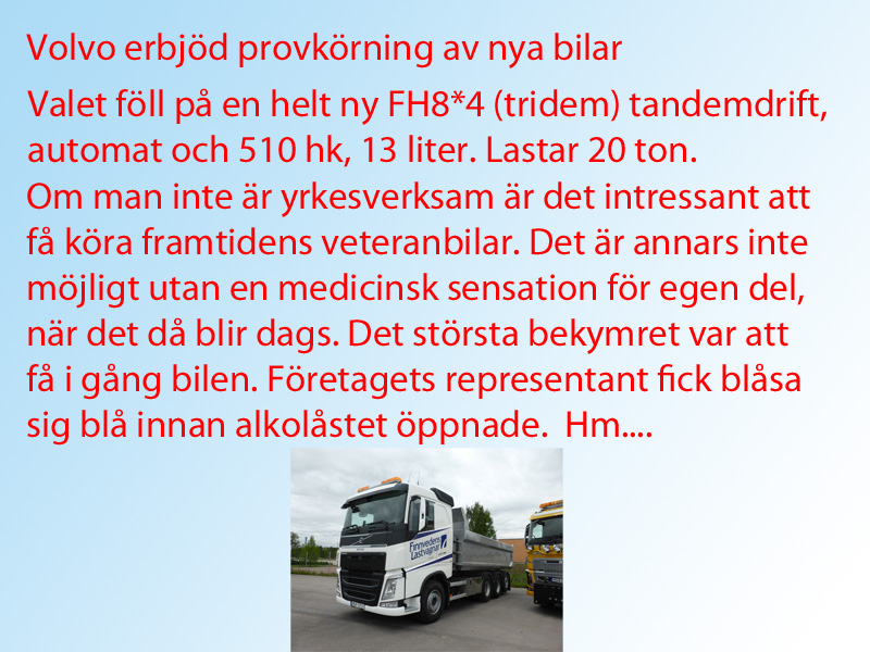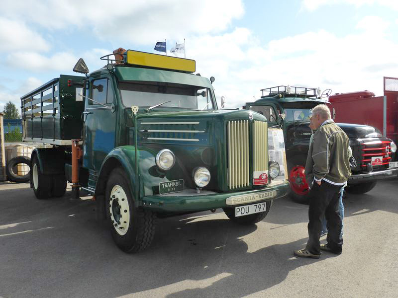 Start och mål vid Finnvedens Lastvagnar Volvo och inte långt från Astrid Lindgrens värd med Emil och de andra. Det var sjätte gången som den relativt unga klubben anordnade en stor träff och de hade även engagerat Thorbjörn Berggren som speaker. Thorbjörn som nog är svårslagen vad det gäller kunskaper om alla veteranlastbilar. Ca 65 anmälda fordon varav av en del vi inte sett tidigare.