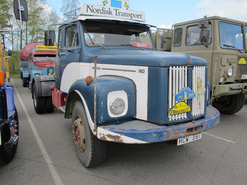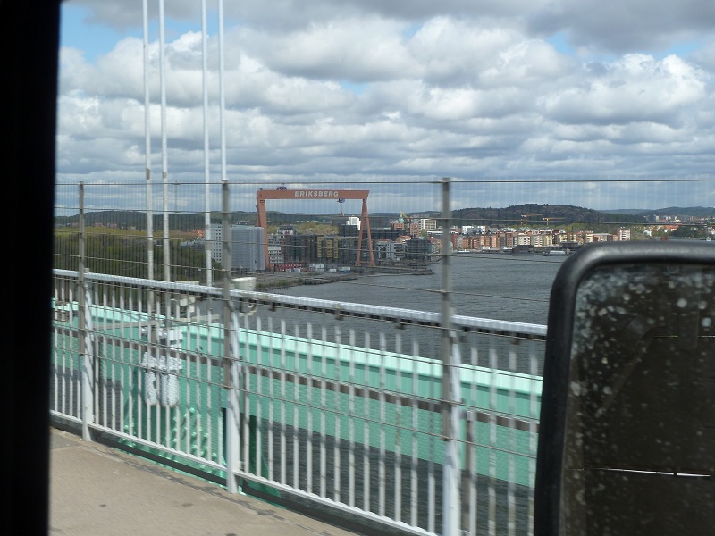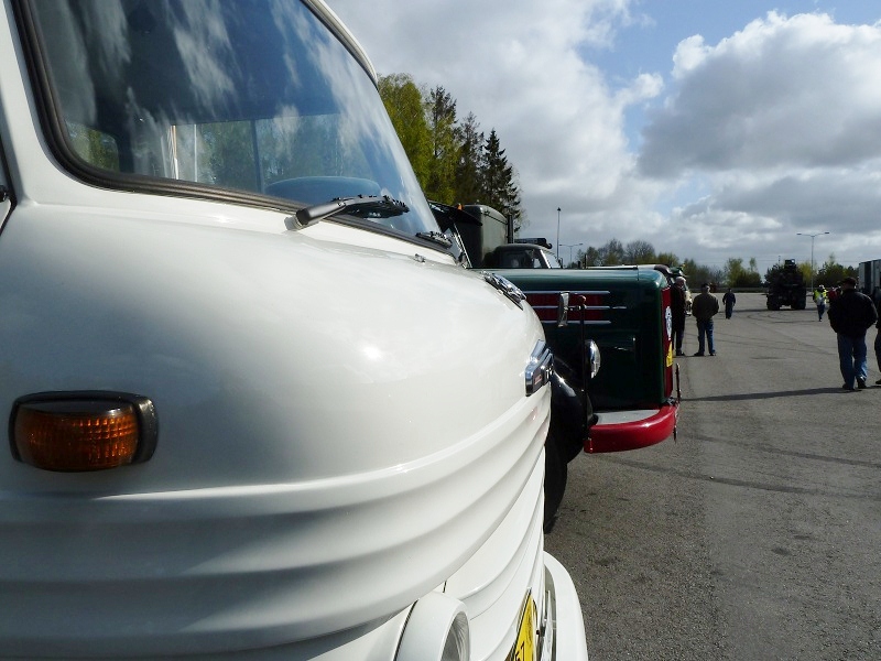 Kursen mot världsarvet, radiosändaren Grimeton med sina imponerande sex master. På småvägar och genom samhällen med storögda betraktare drog karavanen på nästan etthundra bilar vidare uppåt mot Göteborg. Ett av stoppen var på Blondies Åkeri med besök i deras 50-talsvärld. Efter detta passerade vi Släp Kyrka men den som tittade efter Dragbils Kyrka fick titta förgäves. Men gott om kul-tur var det då man i färdvägsnotan beskrivit sevärdheter som vi passerade, kul! Så småningom kom alla till målet på kajen vid Volvomuseet som givetvis hölls öppet.