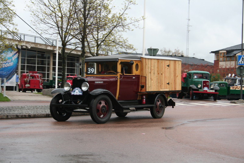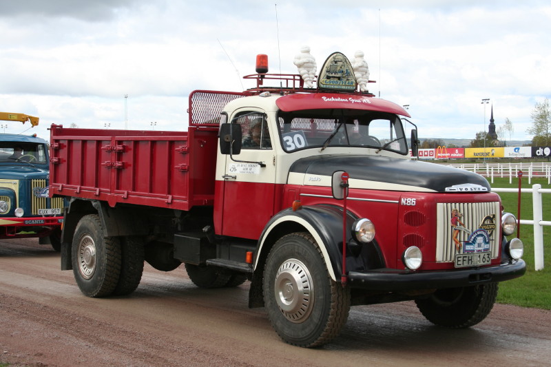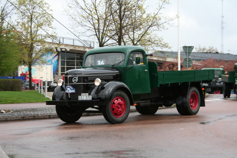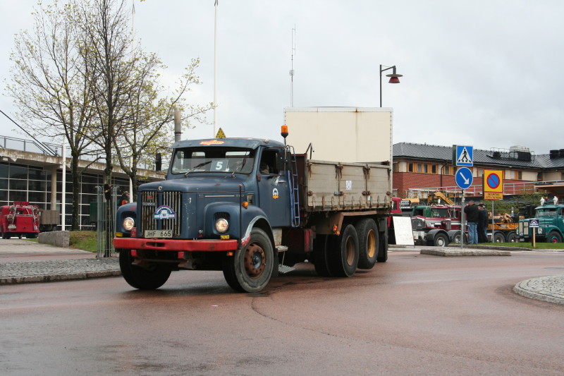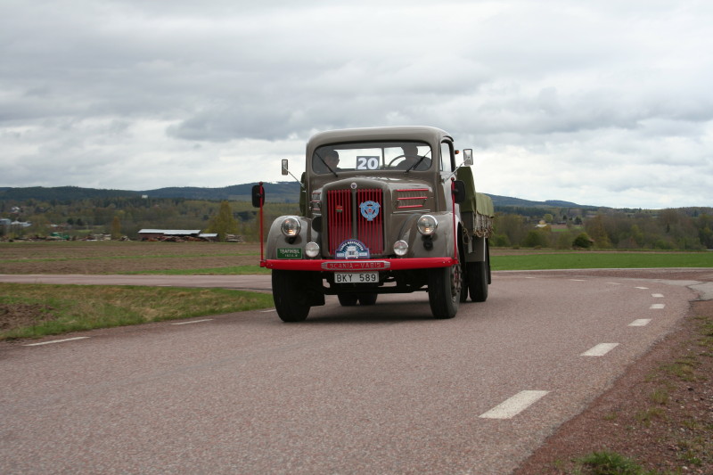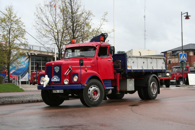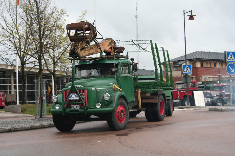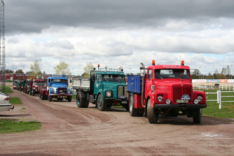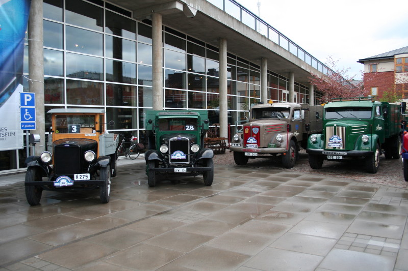 Målgång vid utställningen Trucks in Dalarna där Torbjörn Berggren presenterade fordonen inför publiken. Mycket välordnad träff men vädret kanske inte det bästa, brrr.