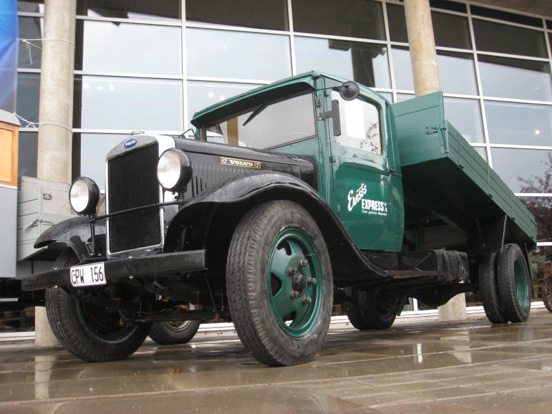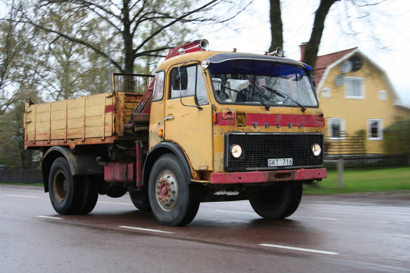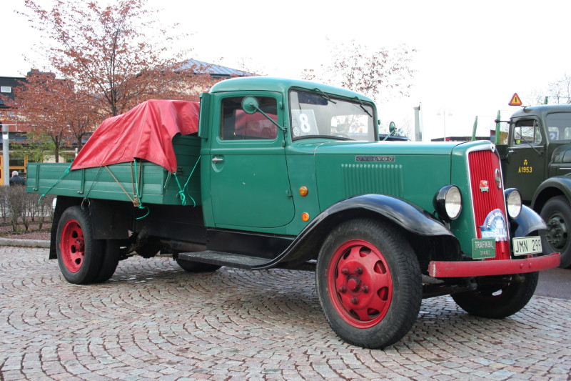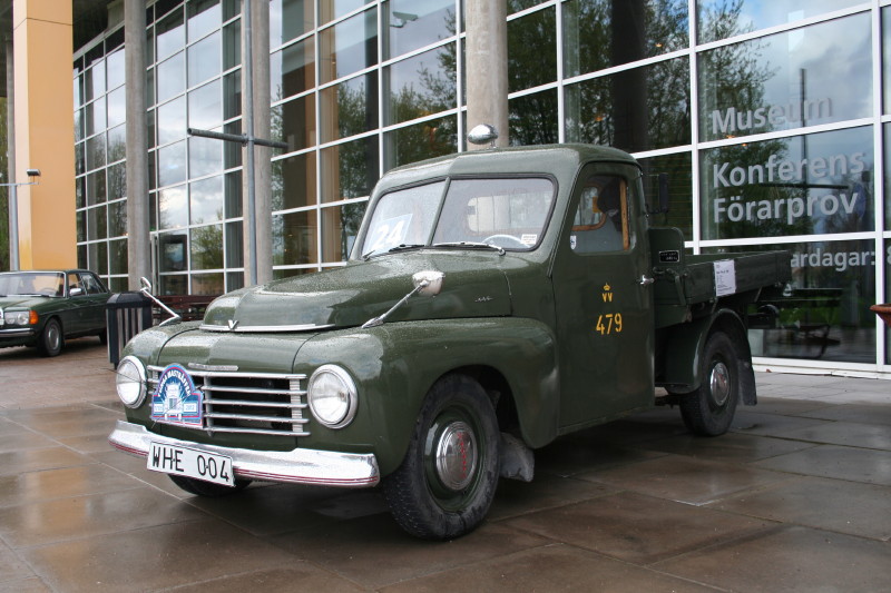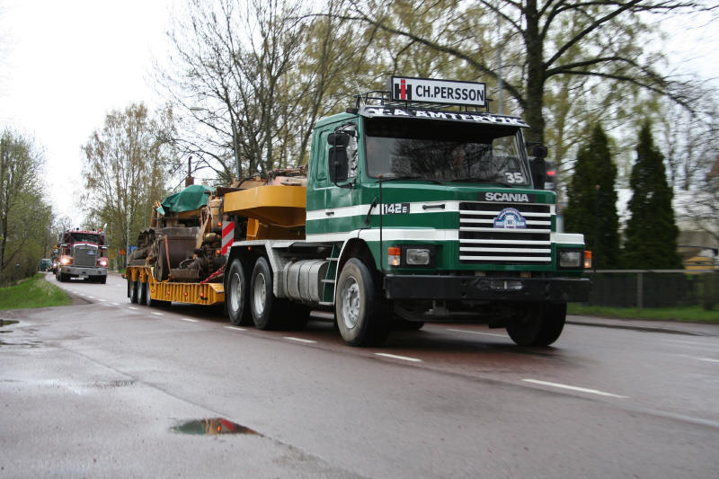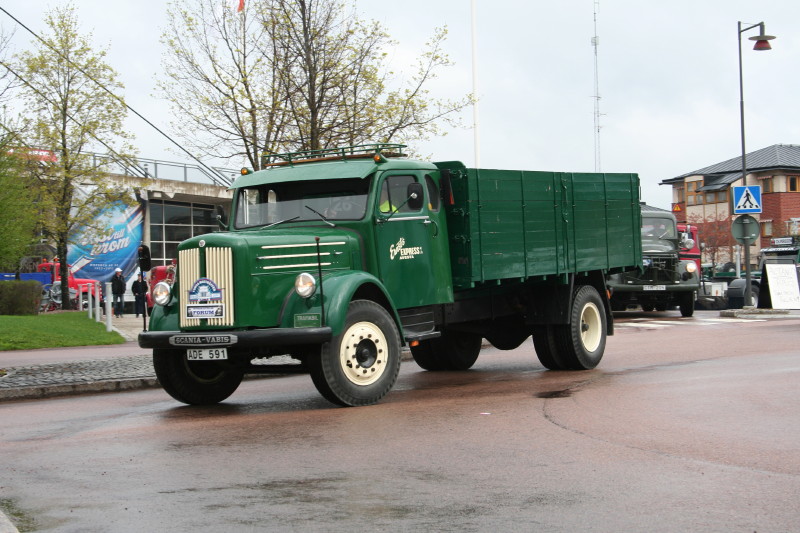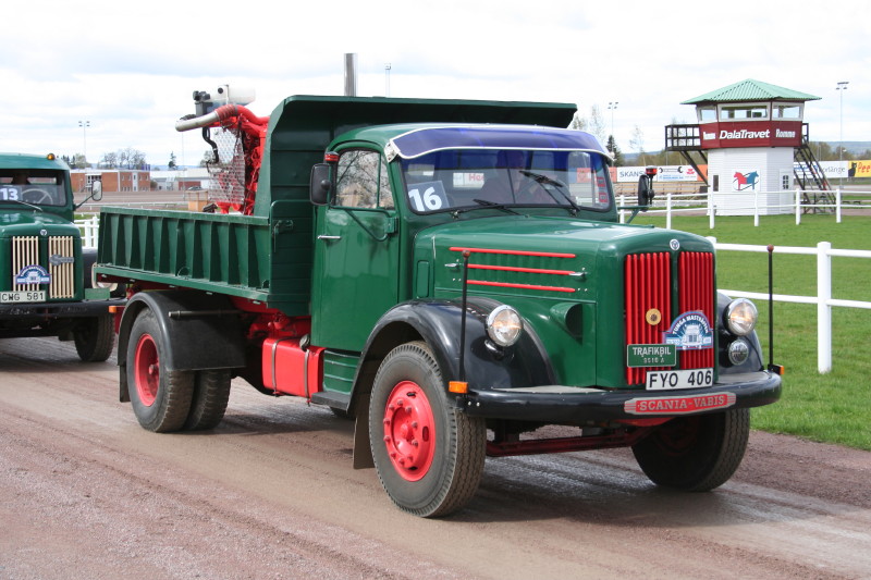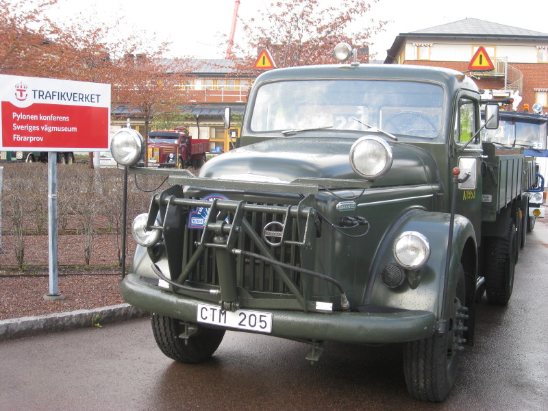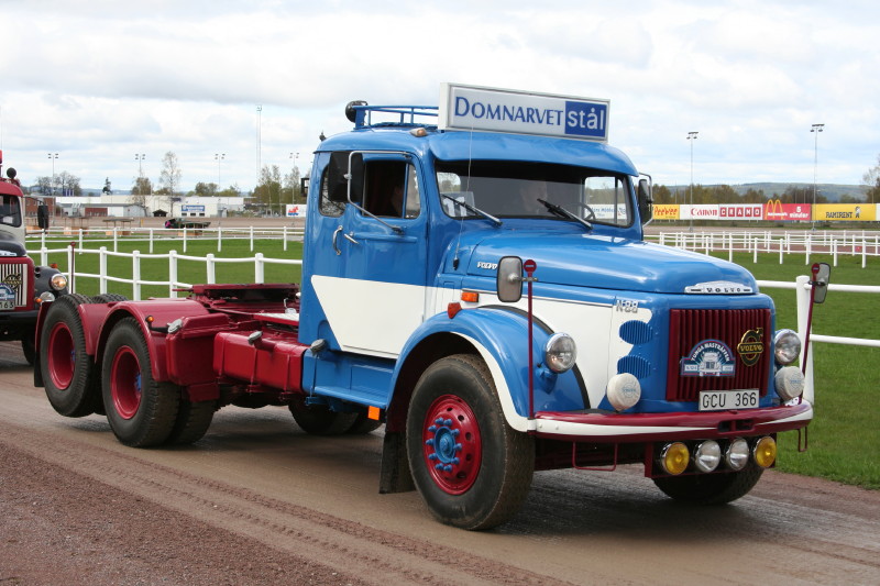 Målgång vid utställningen Trucks in Dalarna där Torbjörn Berggren presenterade fordonen inför publiken. Mycket välordnad träff men vädret kanske inte det bästa, brrr.