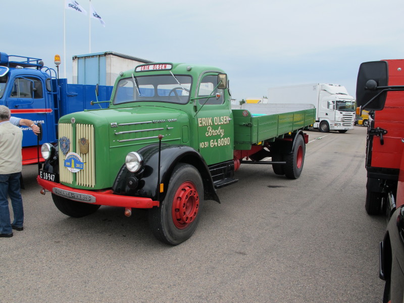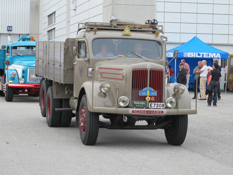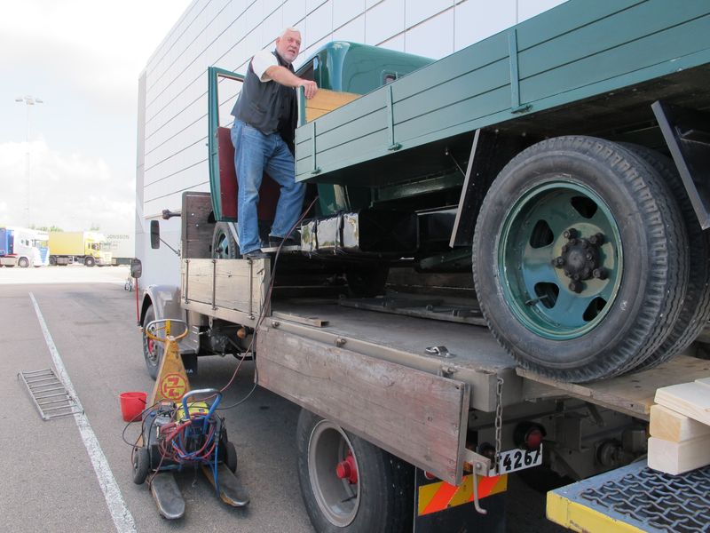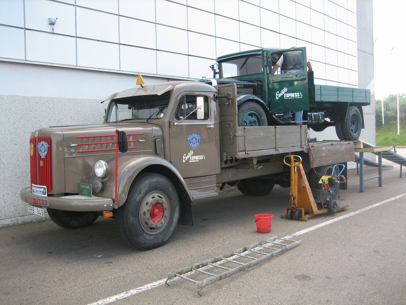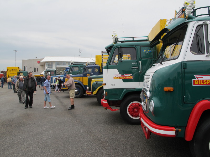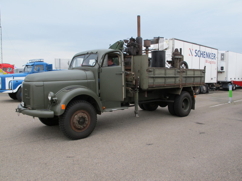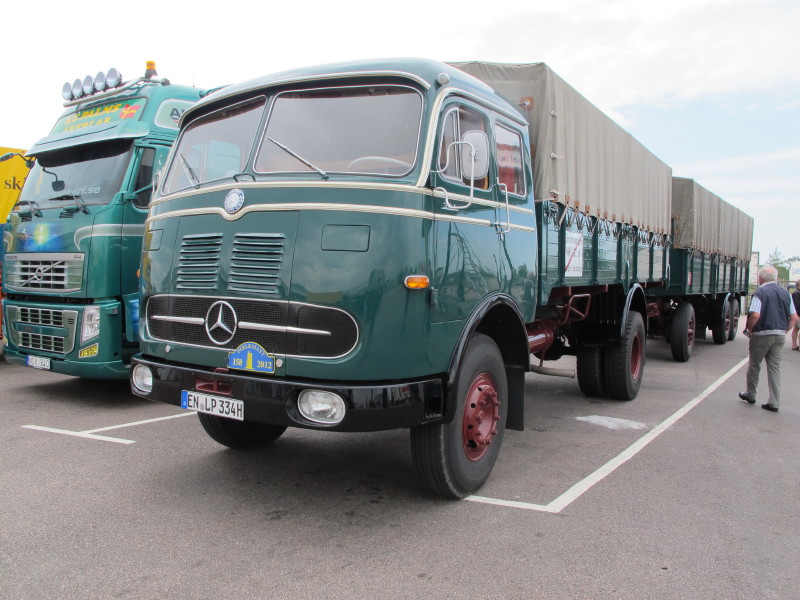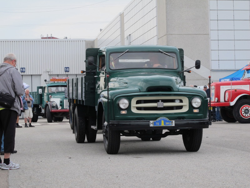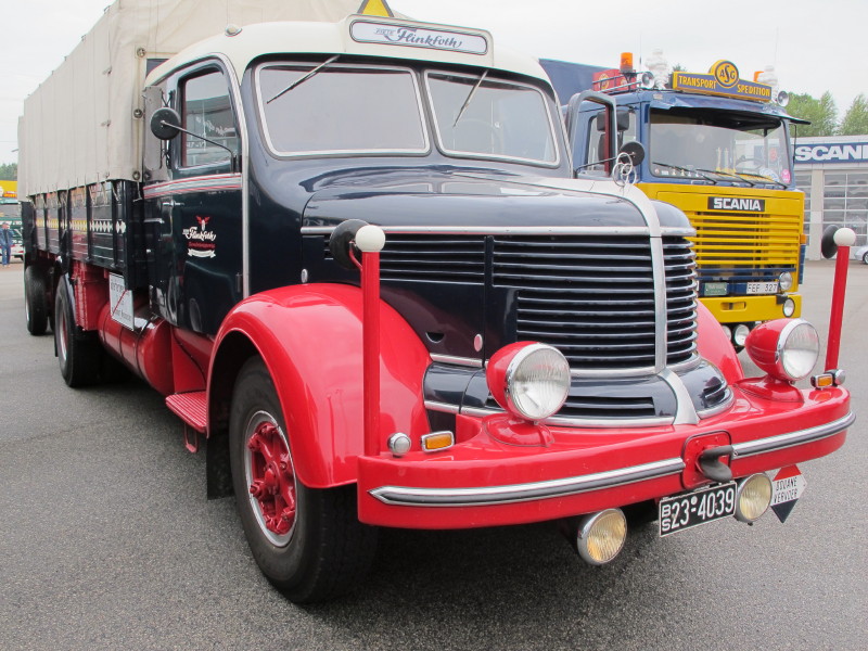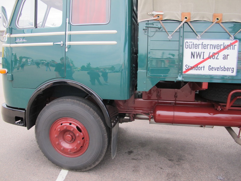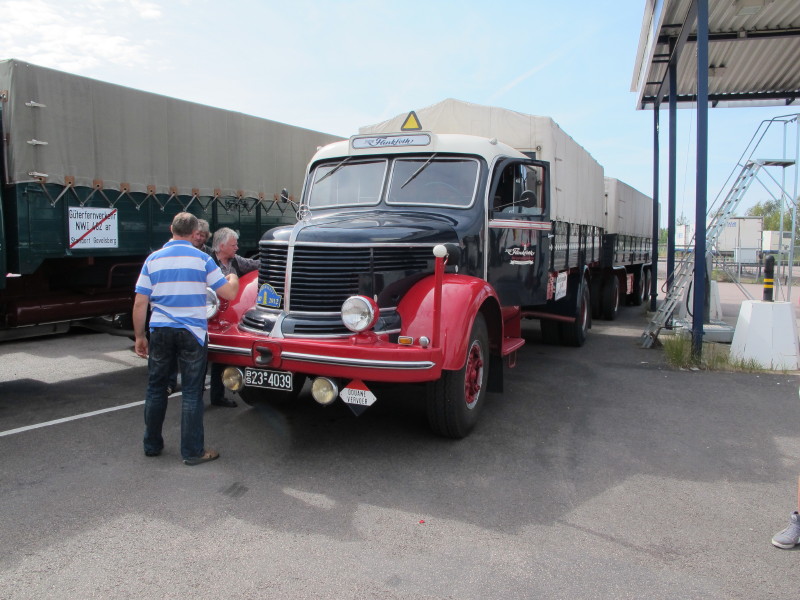 För några av de tyska ekipagen finns lite extra detaljbilder med, ni får ursäkta men vid den här tiden skiljde sig fordonskostruktionerna mellan svenska och tyska byggen. På grund av mycket lastbilsfientliga regler i Tyskland uder 50-talet, till förmån för järnvägen, tvingades man till superlätta konstruktioner. Observera även tillståndsskyltarna på fordonens sidor. "Güterfernverkehr", fjärrtrafik, definierades för transporter över 100 km och krävde bemanning med två förare varav en hade huvudansvaret, "hauptfahrer".