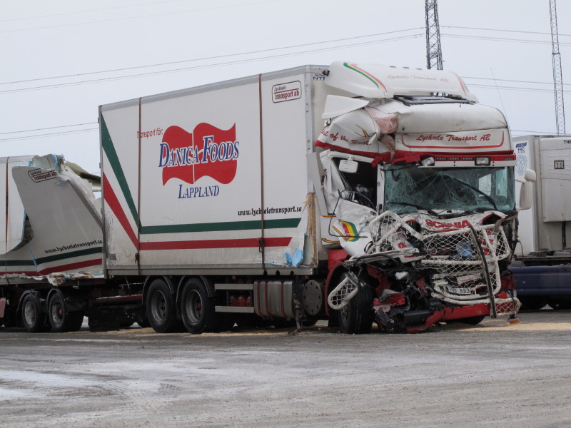 Det som händer med ett försiktigt tryck på bromspedalen med den sämsta tänkbara fordonstypen för att klara en situation som denna kan liknas vid att med en motorcykel bromsa med framhjulsbromsen i en kurva med lösgrus. Dragbilen kan allt för lätt ändra kurs under inbromsning medan trailern med last vill fortsätta sin egen väg. En sladd påbörjas och även fast bromspedalen släpps, förmår inte ett kompenserande styrutslag att häva dragbilens förrädiska kurs i förhållande till trailern, detta på grund av friktionen i kopplingsanordningen mellan bil och trailer och rådande halka. Denna vanliga olyckstyp benämns i USA för Jack-Knife. Enligt min mening kommer inget ESP system att klara av förrädiska vinterväglag så länge konstruktörerna inte har insett den här fordonskombinationens speciella egenheter. Fordonstypen är den vanligaste i internationell trafik och uppskattas till ca 80 procent av sådan trafik.