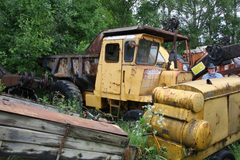 Där fick vi tillfälle att studera timmerbilar och lastmaskiner som inte finns någon annanstans.