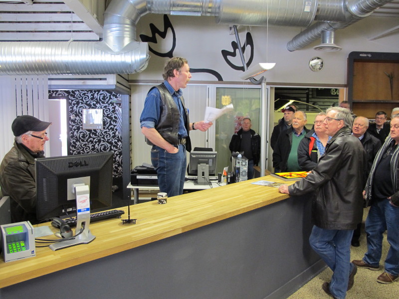 Efter bara någon timme bar det sedan iväg för studiebesök på Volvos Olofströmsanläggning där vi fick bese plåtpressning av bildelar, visserligen bara på avstånd och från en utsiktsplats av säkerhetsskäl. Då ytterligare ett industribesök samt även besök i Kjells garage och verkstad skulle hinnas med under dagen fick vi inte studera Volvo-anläggningen för länge om någon lunch skulle hinnas med.