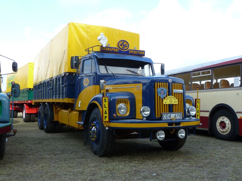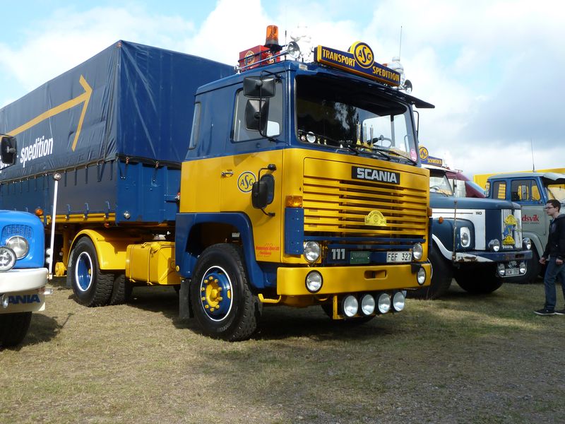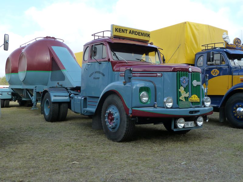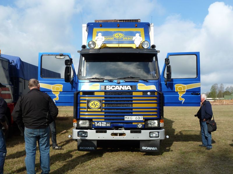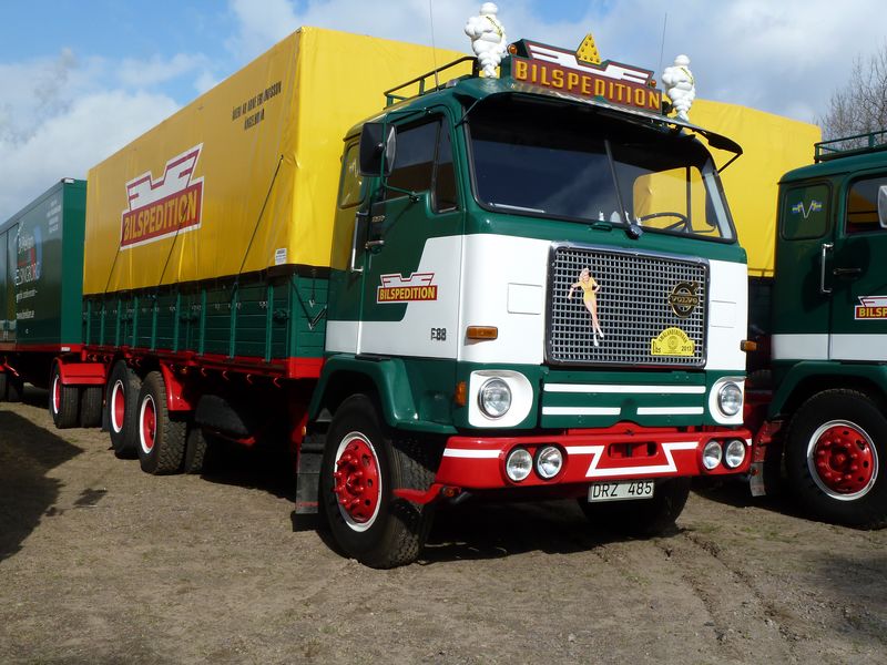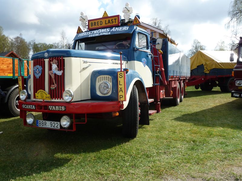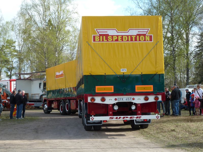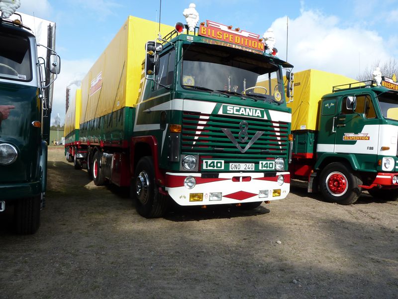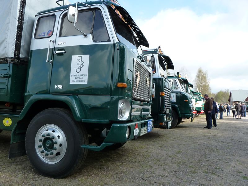 Några kommentarer till bilderna: ett ovanligt fordon som var med var en Scania 145 (med tandemdrift), men i år som trailerdragare med grävmaskinstrailer efter. Lösningen är att vändskivana alltid ligger på och behöver man traila lyfter man bara av bergflaket. Andra ekipage att nämna särskilt var bl a en mycket elegant Volvobuss med strömlinjeformad kaross från Torpa Omnibustrafik liksom den i flera avseenden imponerande Svebøllebärgaren. Annars var det även en del nytillkomna ekipage som också väckte extra intresse.