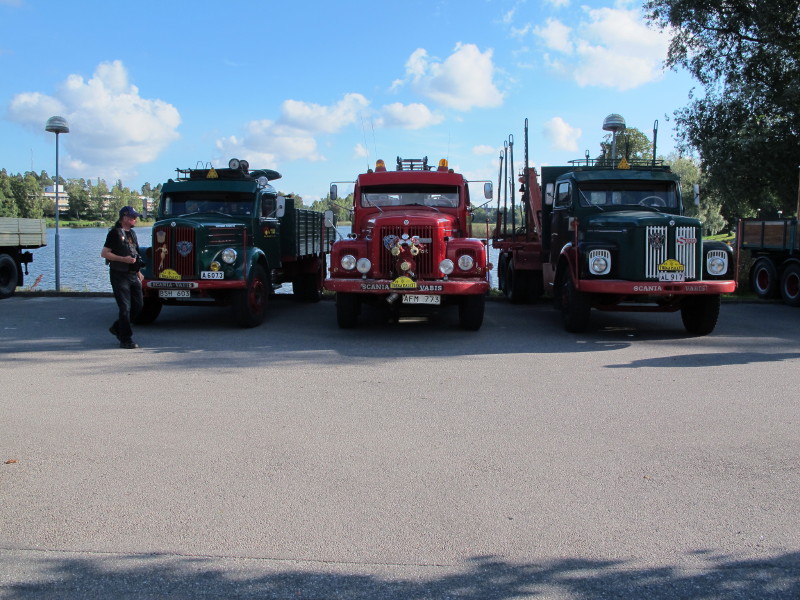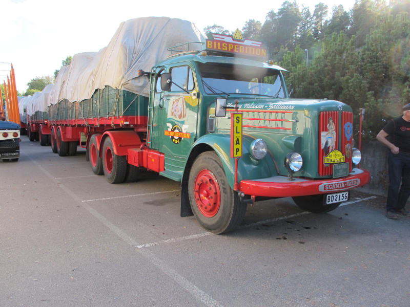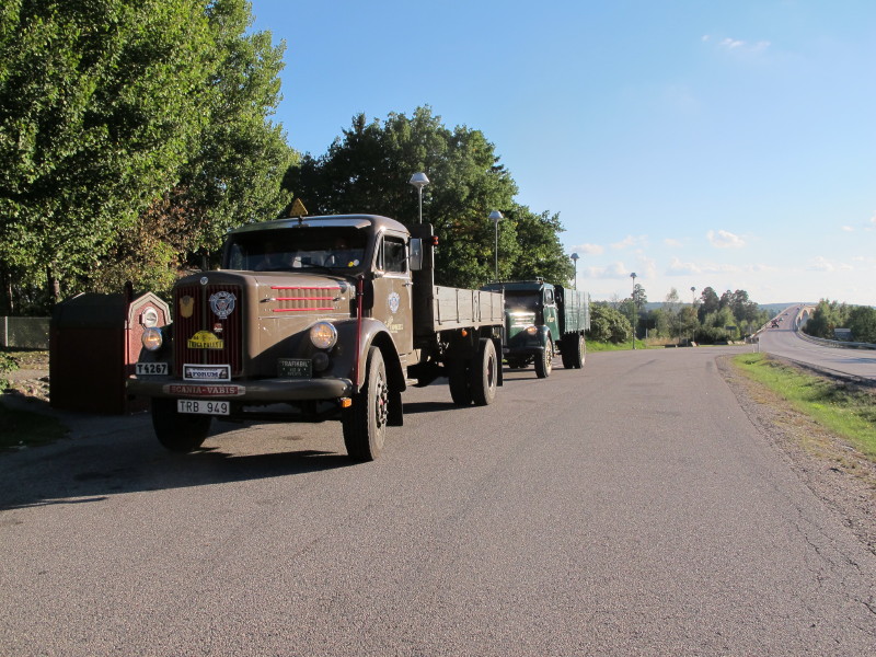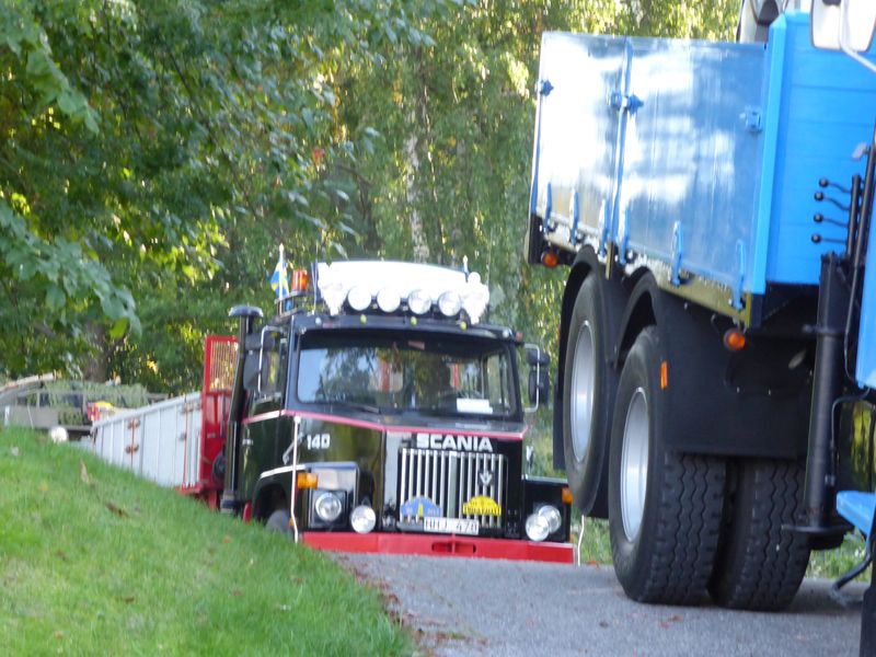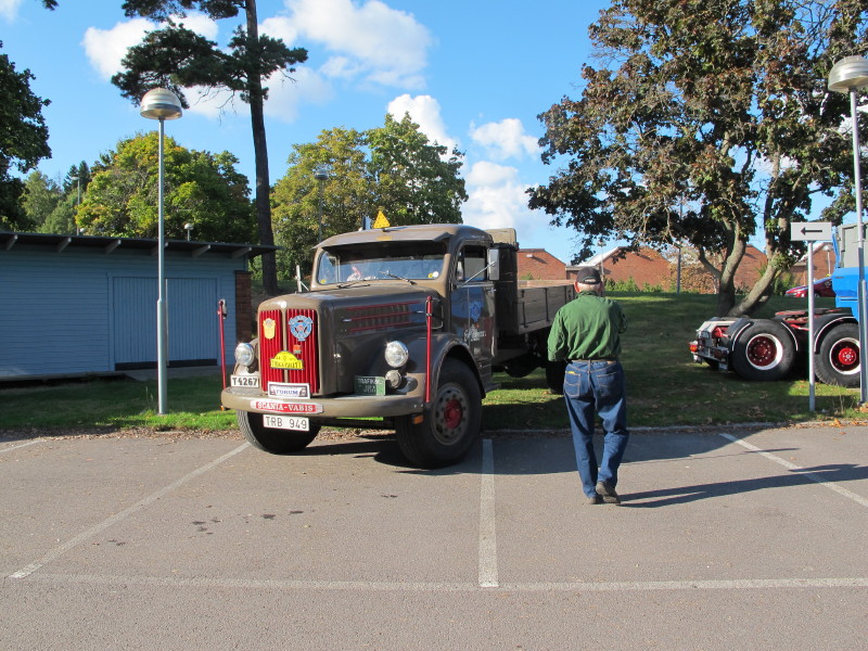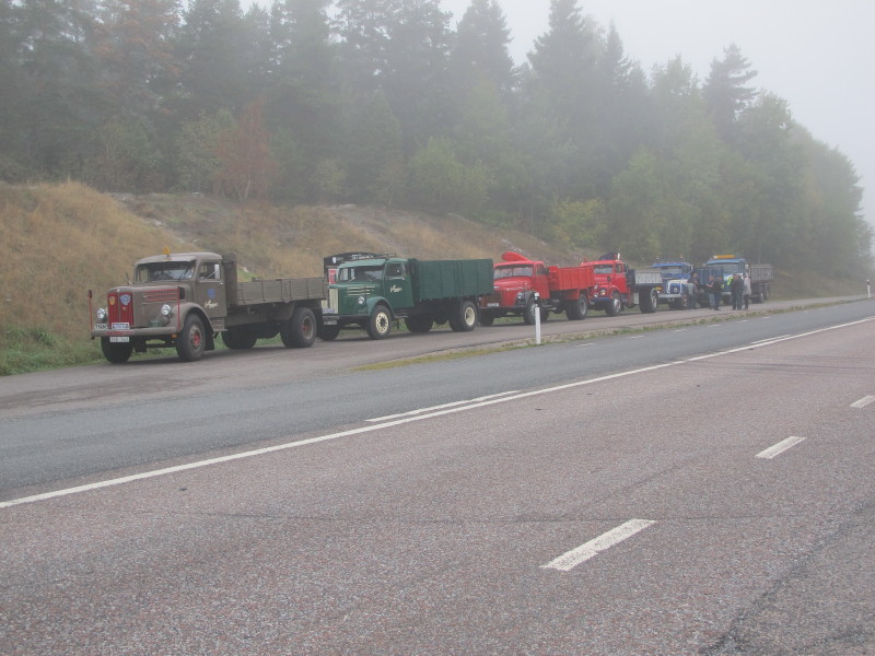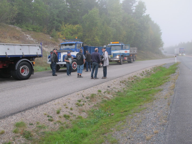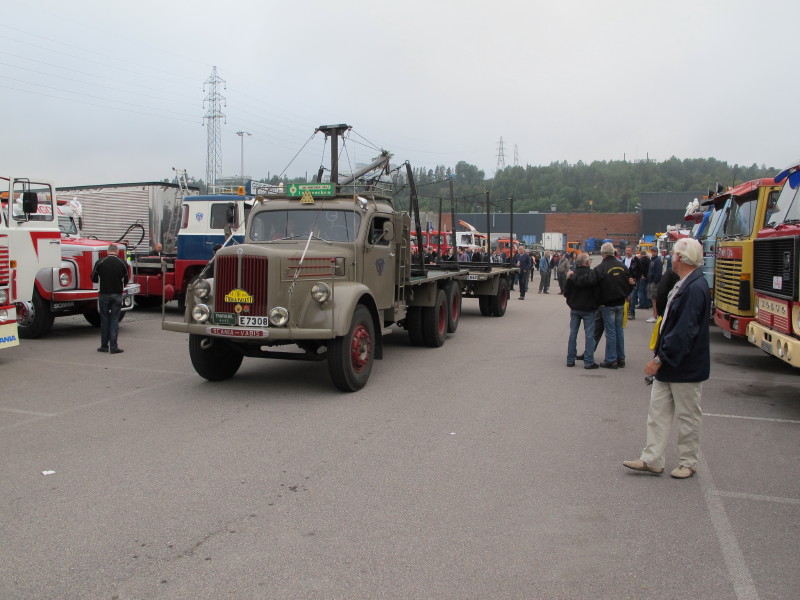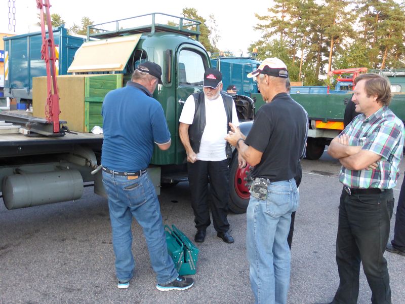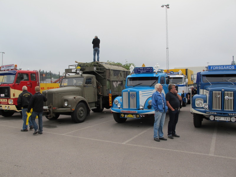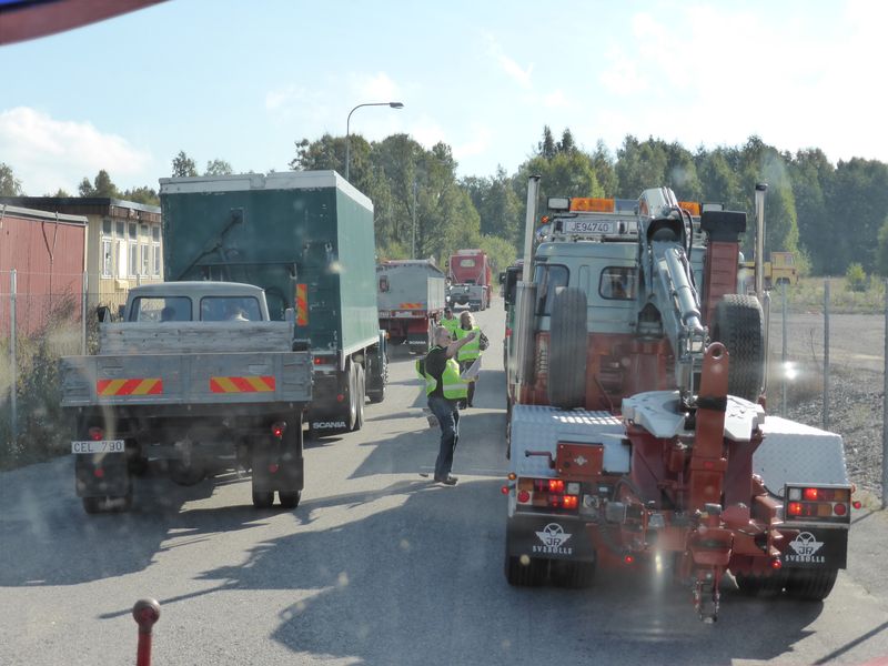 De ca femtiotalet funktionärerna såg sedan till att körslingan fungerade på ett mycket bra sätt och det blev också tillfälle att svara (försöka!) på kluriga frågor efter vägen. Det gavs rika tillfällen att se på bilarna som var blandat med de vi sett för och de vi aldrig sett tidigare och även prata med andra lika veteranlastbilsintresserade. Det fanns många ovanliga/unika fordon med och ett som kan nämnas är den LB76 från Finland med en busslikande trailer på vändskivan. Ekipaget byggdes redan från början för att vara ett rullande Scaniakontor varifrån det skedde försäljning av Scanias bilar i Finland.