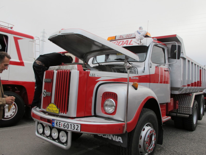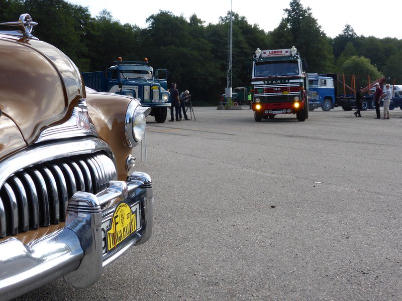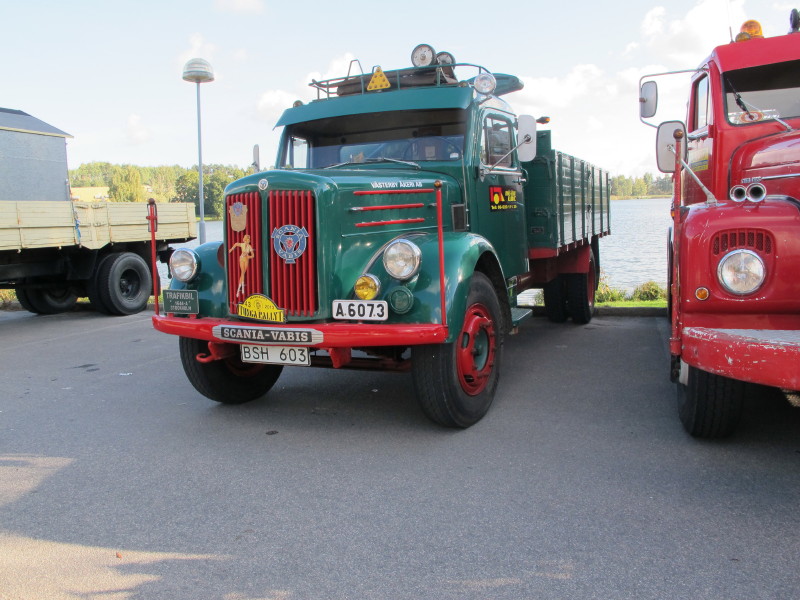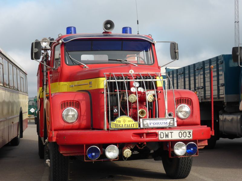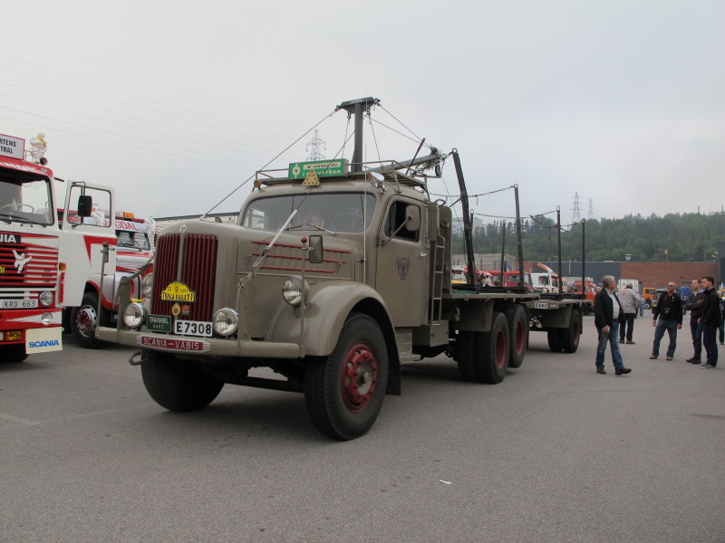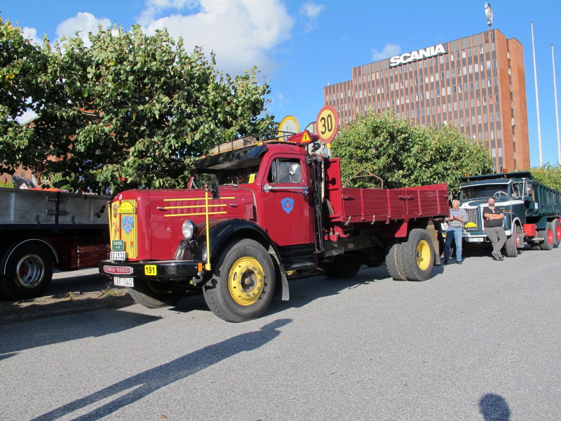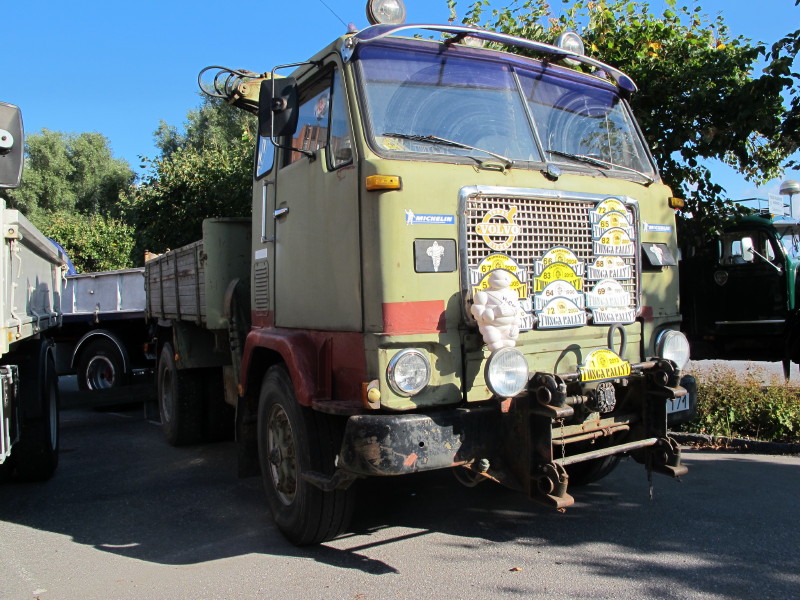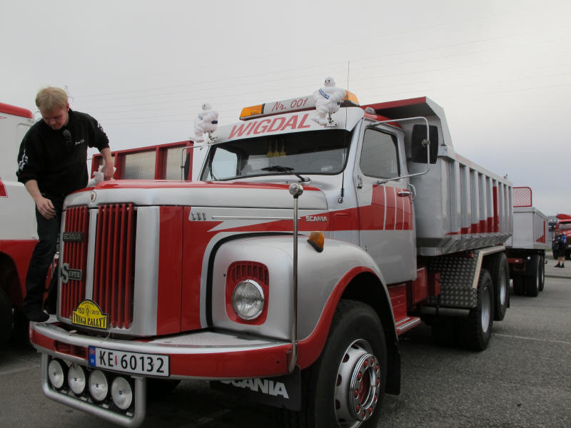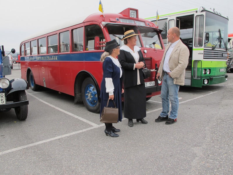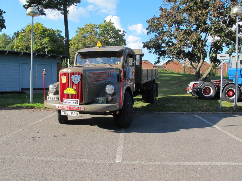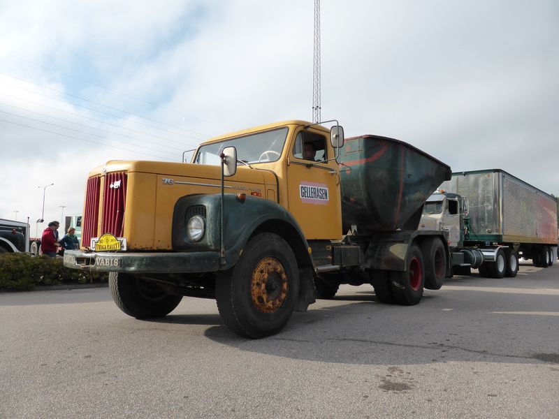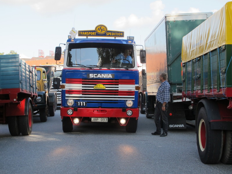 De ca femtiotalet funktionärerna såg sedan till att körslingan fungerade på ett mycket bra sätt och det blev också tillfälle att svara (försöka!) på kluriga frågor efter vägen. Det gavs rika tillfällen att se på bilarna som var blandat med de vi sett för och de vi aldrig sett tidigare och även prata med andra lika veteranlastbilsintresserade. Det fanns många ovanliga/unika fordon med och ett som kan nämnas är den LB76 från Finland med en busslikande trailer på vändskivan. Ekipaget byggdes redan från början för att vara ett rullande Scaniakontor varifrån det skedde försäljning av Scanias bilar i Finland.
