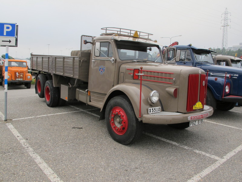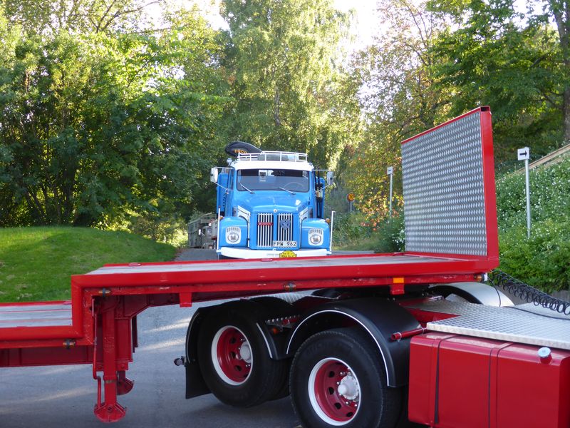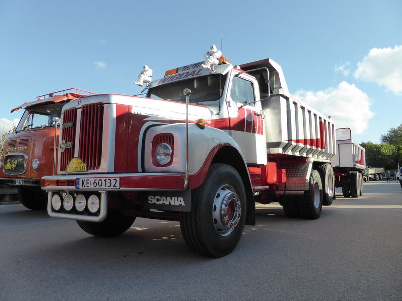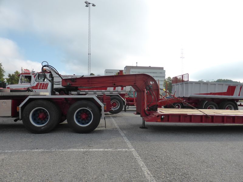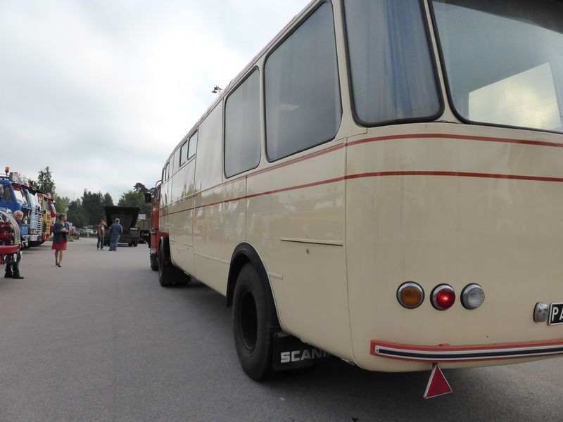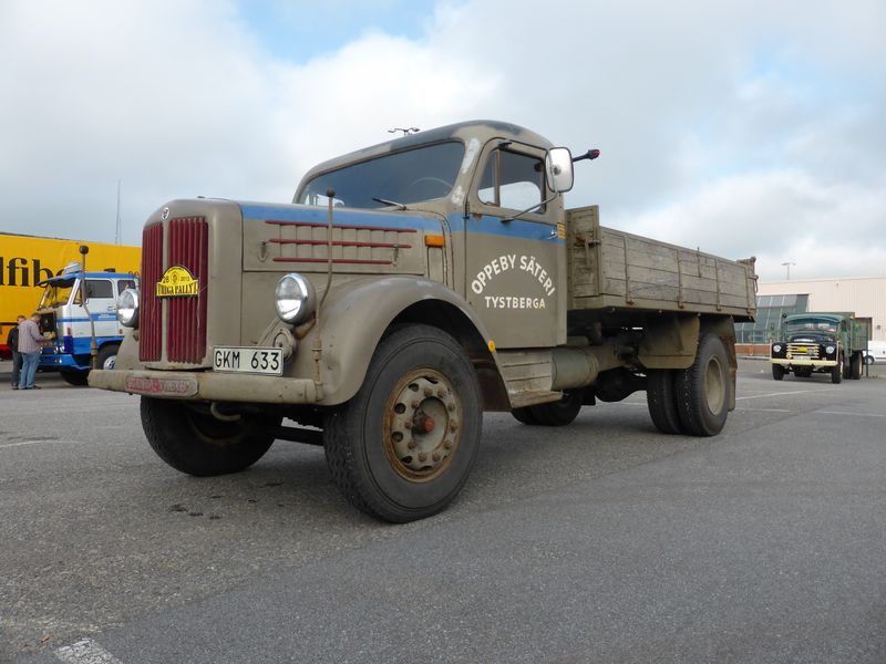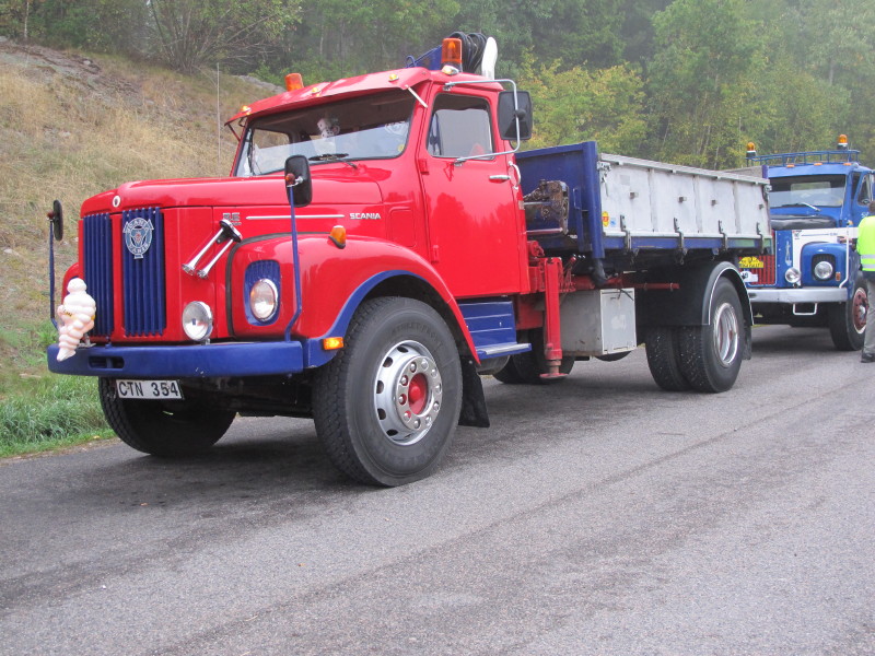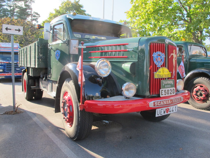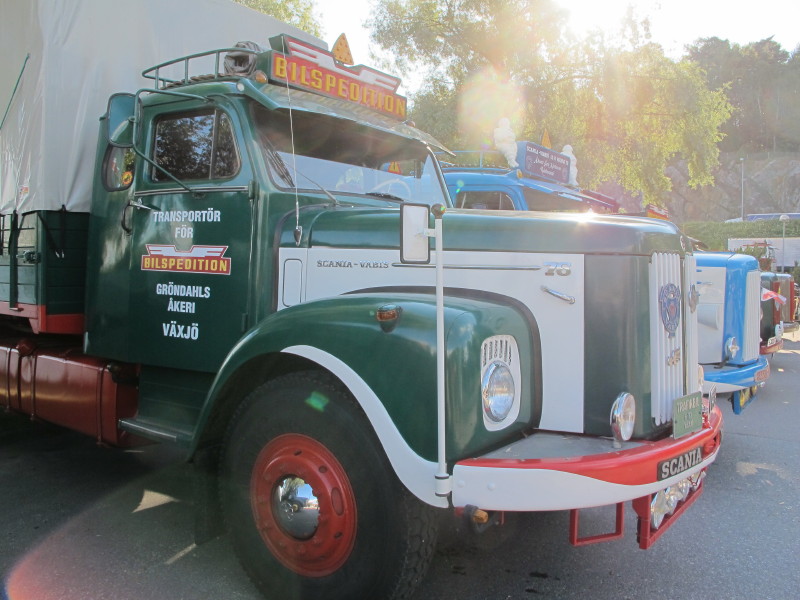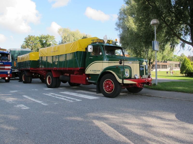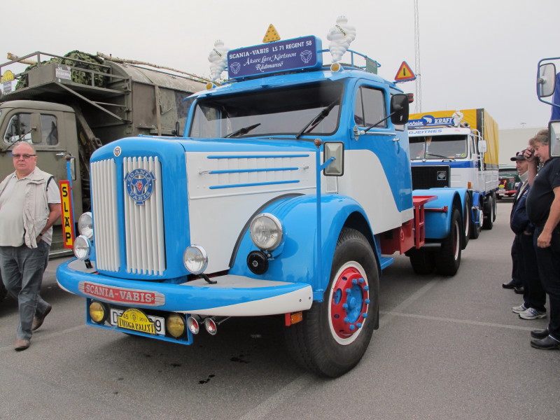 De ca femtiotalet funktionärerna såg sedan till att körslingan fungerade på ett mycket bra sätt och det blev också tillfälle att svara (försöka!) på kluriga frågor efter vägen. Det gavs rika tillfällen att se på bilarna som var blandat med de vi sett för och de vi aldrig sett tidigare och även prata med andra lika veteranlastbilsintresserade. Det fanns många ovanliga/unika fordon med och ett som kan nämnas är den LB76 från Finland med en busslikande trailer på vändskivan. Ekipaget byggdes redan från början för att vara ett rullande Scaniakontor varifrån det skedde försäljning av Scanias bilar i Finland.