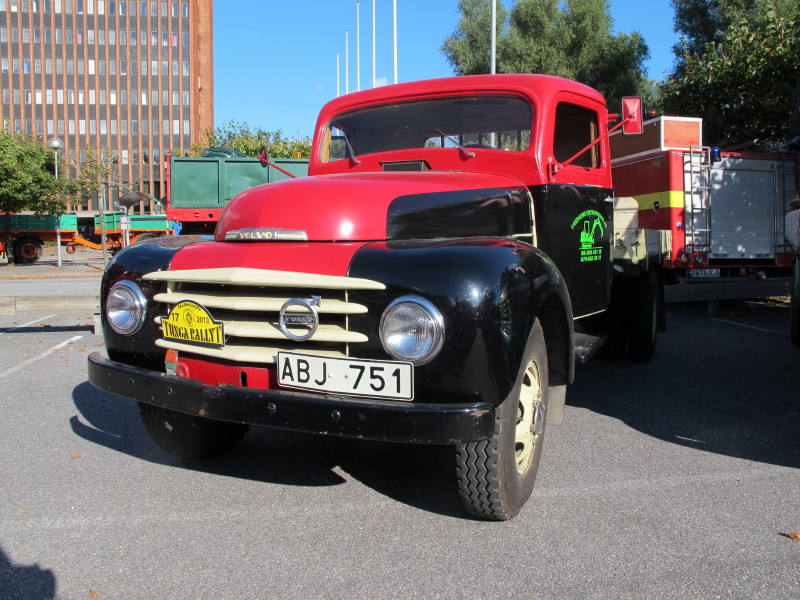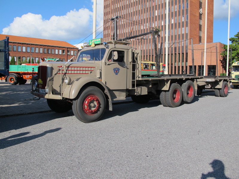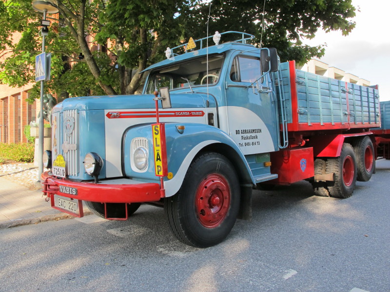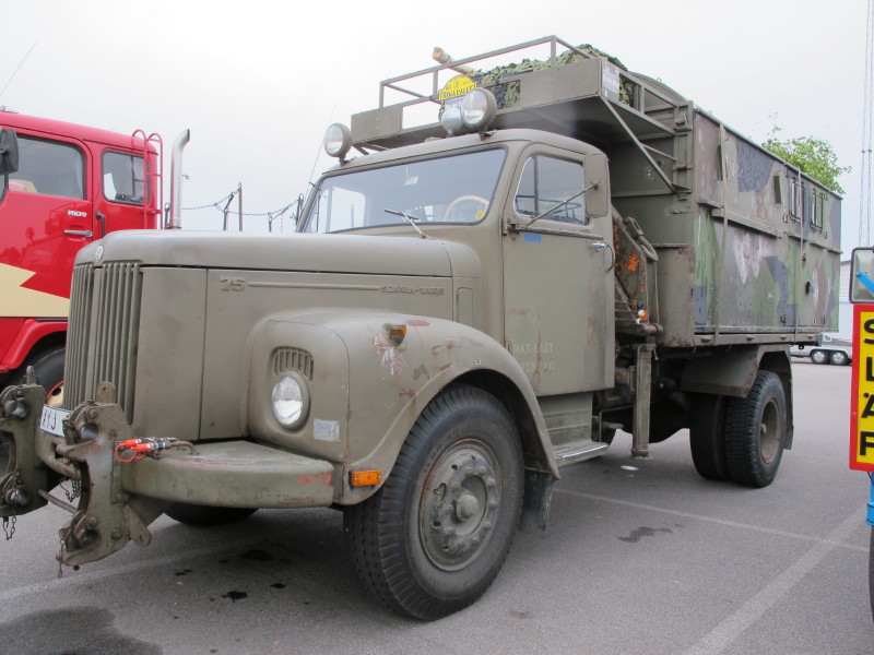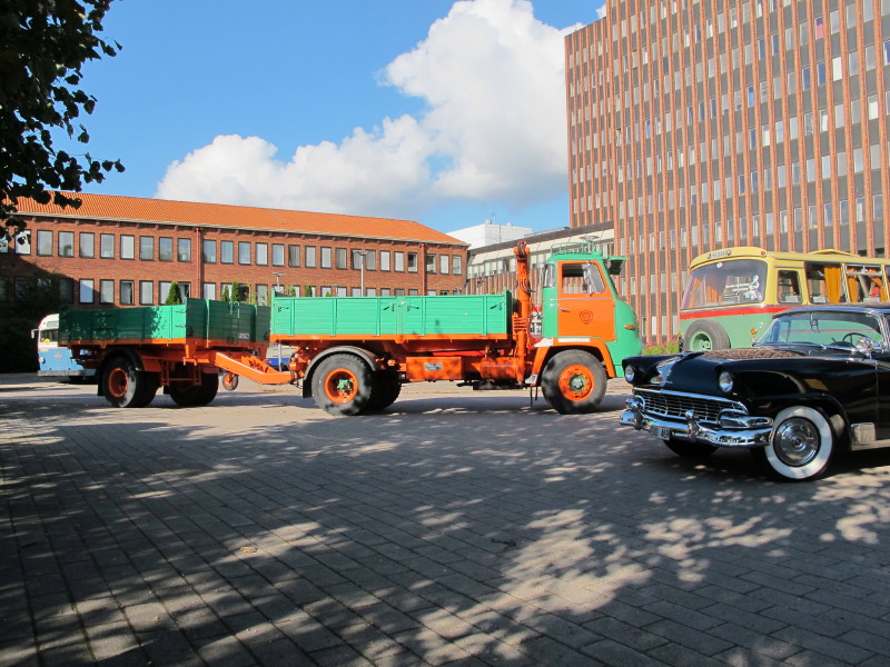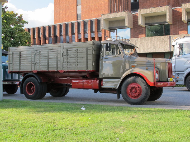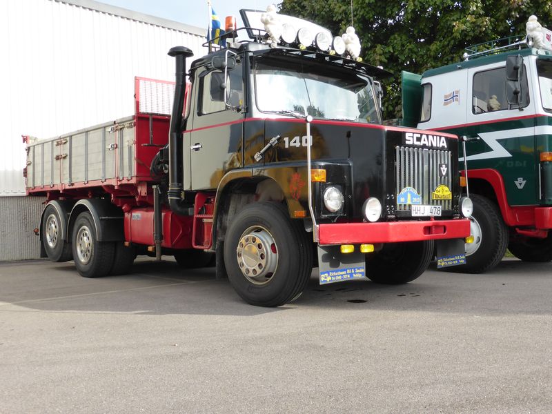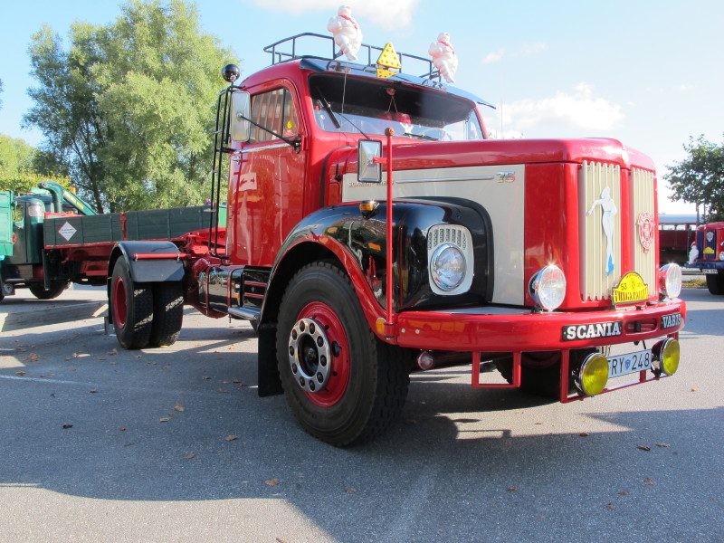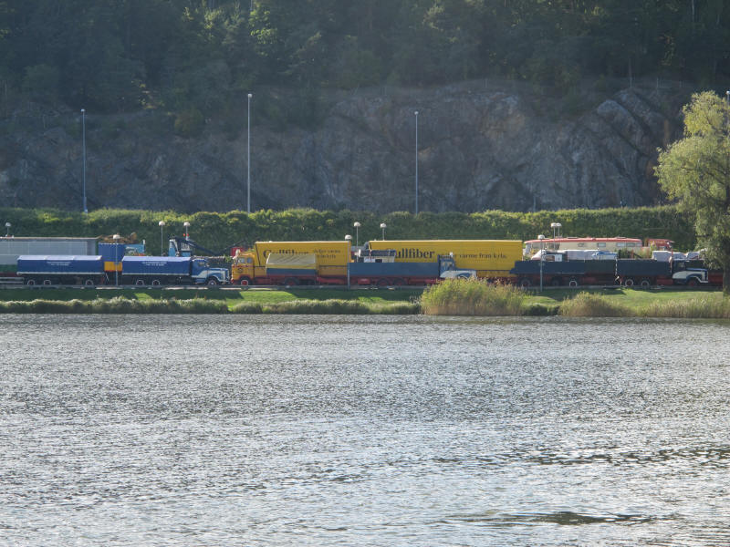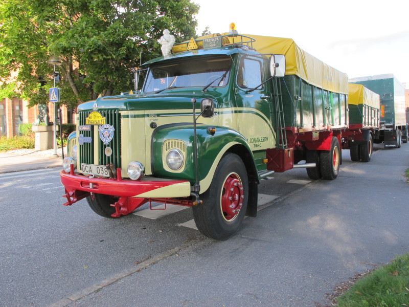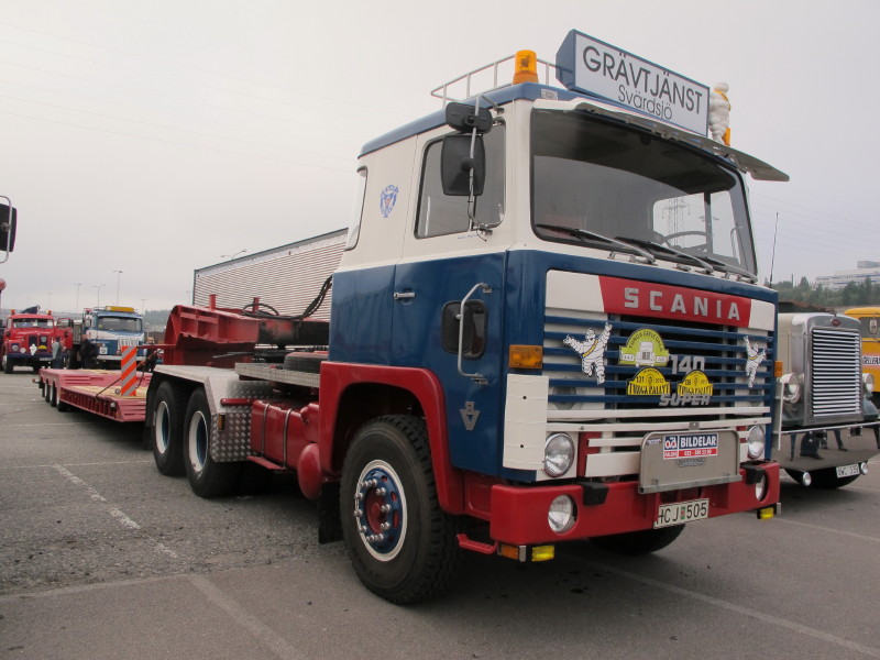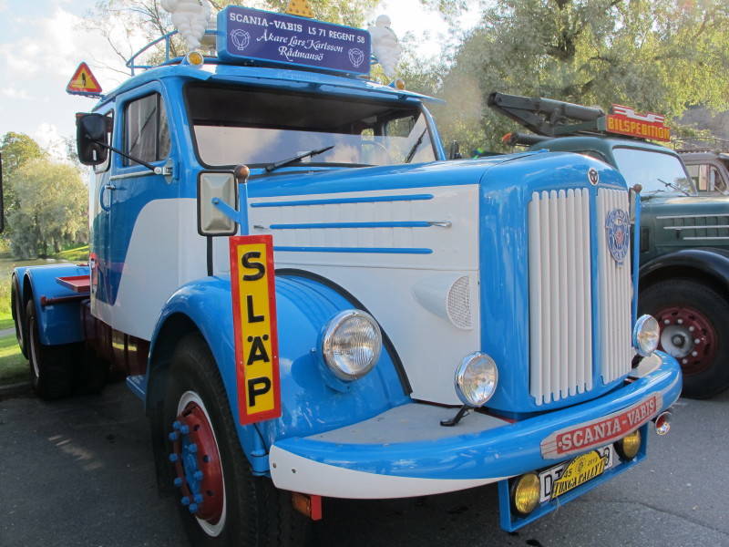 De ca femtiotalet funktionärerna såg sedan till att körslingan fungerade på ett mycket bra sätt och det blev också tillfälle att svara (försöka!) på kluriga frågor efter vägen. Det gavs rika tillfällen att se på bilarna som var blandat med de vi sett för och de vi aldrig sett tidigare och även prata med andra lika veteranlastbilsintresserade. Det fanns många ovanliga/unika fordon med och ett som kan nämnas är den LB76 från Finland med en busslikande trailer på vändskivan. Ekipaget byggdes redan från början för att vara ett rullande Scaniakontor varifrån det skedde försäljning av Scanias bilar i Finland.