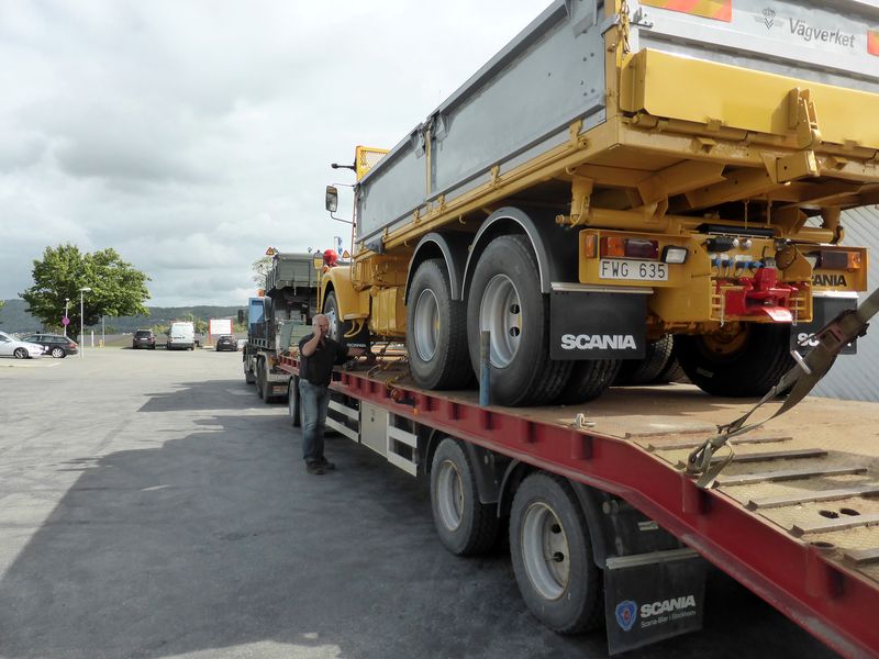 44 lastbilar, en motorcykel, en personbil och en traktor fanns på plats (prydnad och last).