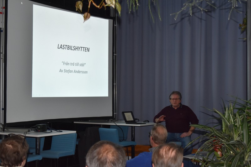 Medans kaffe med macka intogs presenterade sig samtliga ÅHS medlemmar. Sedan var det dags för Stefan Andersson och föredraget Historien om lastbilshytten . Vi avbröt för lunch vid 13.00 varefter föredraget återupptogs. Medlemmarna gav spontana kommentarer till det uppskattade föredraget och stämningen var glad och trevlig.