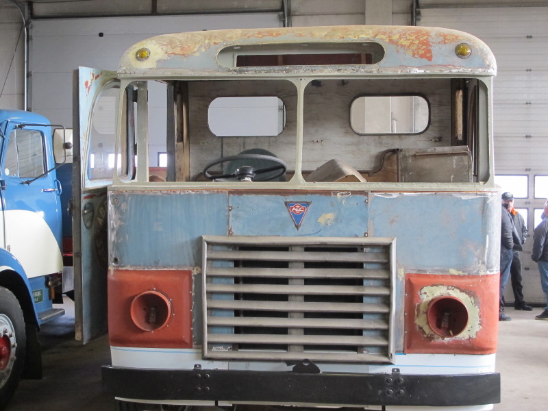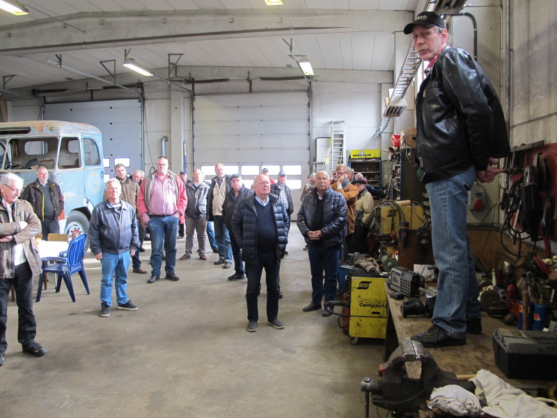Åke Andersson berättade intressant om sina veteranfordon och även om Abbekås åkeris historia. I samlingen väckte en pågående renovering mycket stort intresse bland oss alla, det var en för vårt land mycket udda bil av märket AEC. Den hade importerats som ett chassi och Karlaverken som normalt tillverkade busskarosser hade tillverkat bilens hytt, se bild. Bilen var mycket robust för sin tid, tidigt 50-tal, kanske t o m mer robust än vad våra svenska märken var vid den tiden.