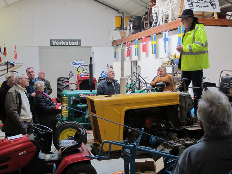 Eftermiddagens programpunkt bestod i besök på Traktorängens museum strax utanför Ystad. Tor Larsson var förutom en intressant presentatör av museets samling av traktorer och maskiner, också en mycket god historiebeskrivare om lantbrukets utveckling med hjälp av maskinteknik. Vi bjöds även här på gott fika med dopp. Det var många av besökarna som hade frågor om traktorerna och speciella konstruktionslösningar på dessa, vilket visar att även denna programpunkt blev uppskattad.