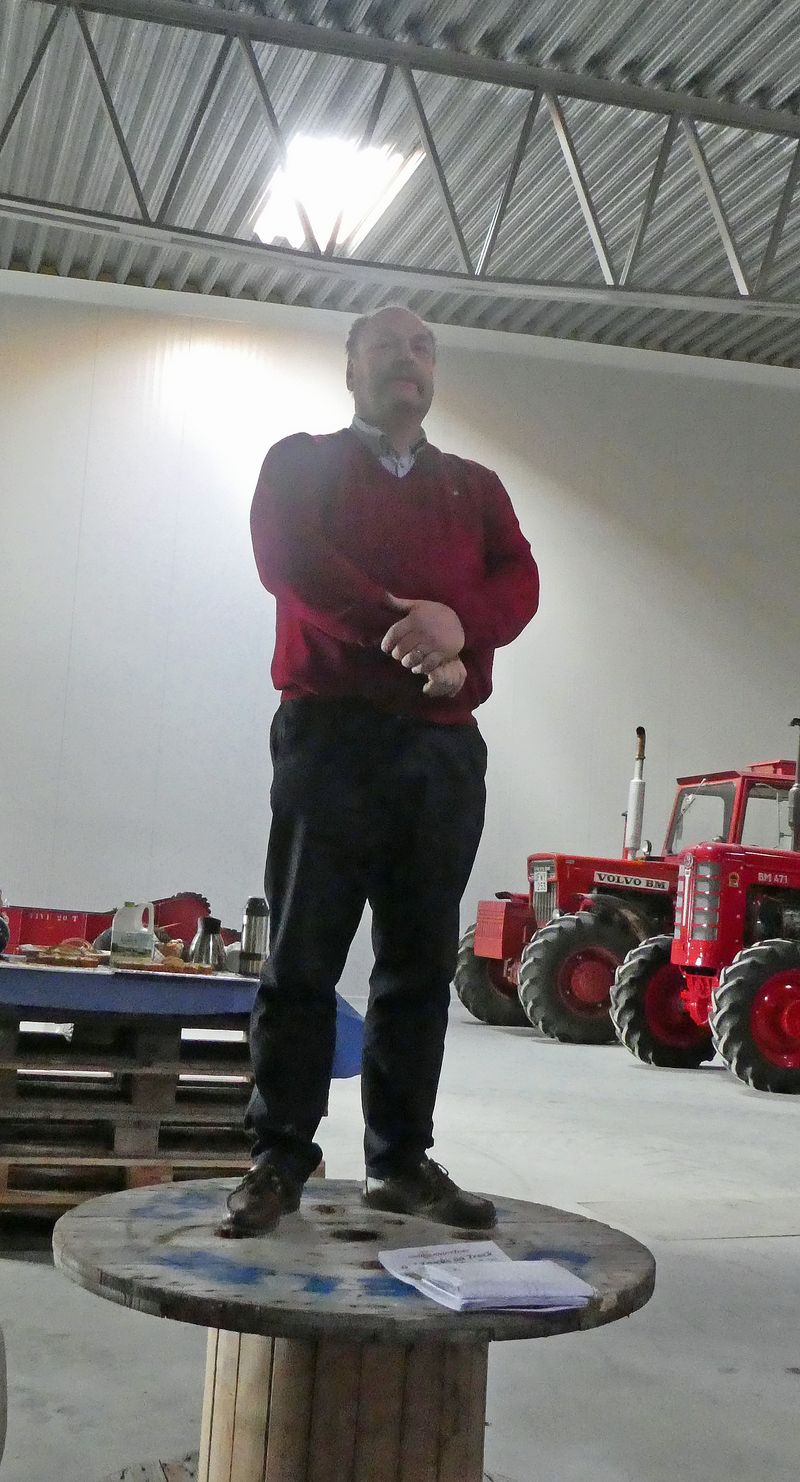 Efter en nästan lika klassisk lunch med raggmunk och fläsk blev det en intressant föreläsning av Per Thomson som med unika bilder visande de första kontinenttaltansporterna efter krigsslutet med fordon som många av oss inte sett tidigare. Att en stor del av dessa bilder finns idag är den vid tiden efter krigsslutet då mycket unga pojken Erik Hags förtjänst. Erik har berättat att intresset för stora märkliga lastbilar vägde tyngre än lexläsning.