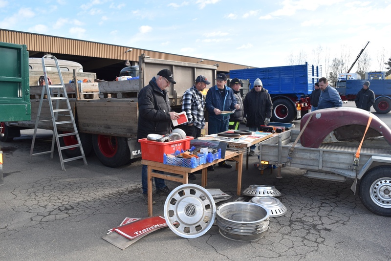 I år var det 18 stycken säljare som slöt upp till Tung veteranlastbilsmarknad, en del kom i veteranlastbil, fällde lämmarna och sålde från flaken, en del hade personbilssläpkärra och andra hade bord.