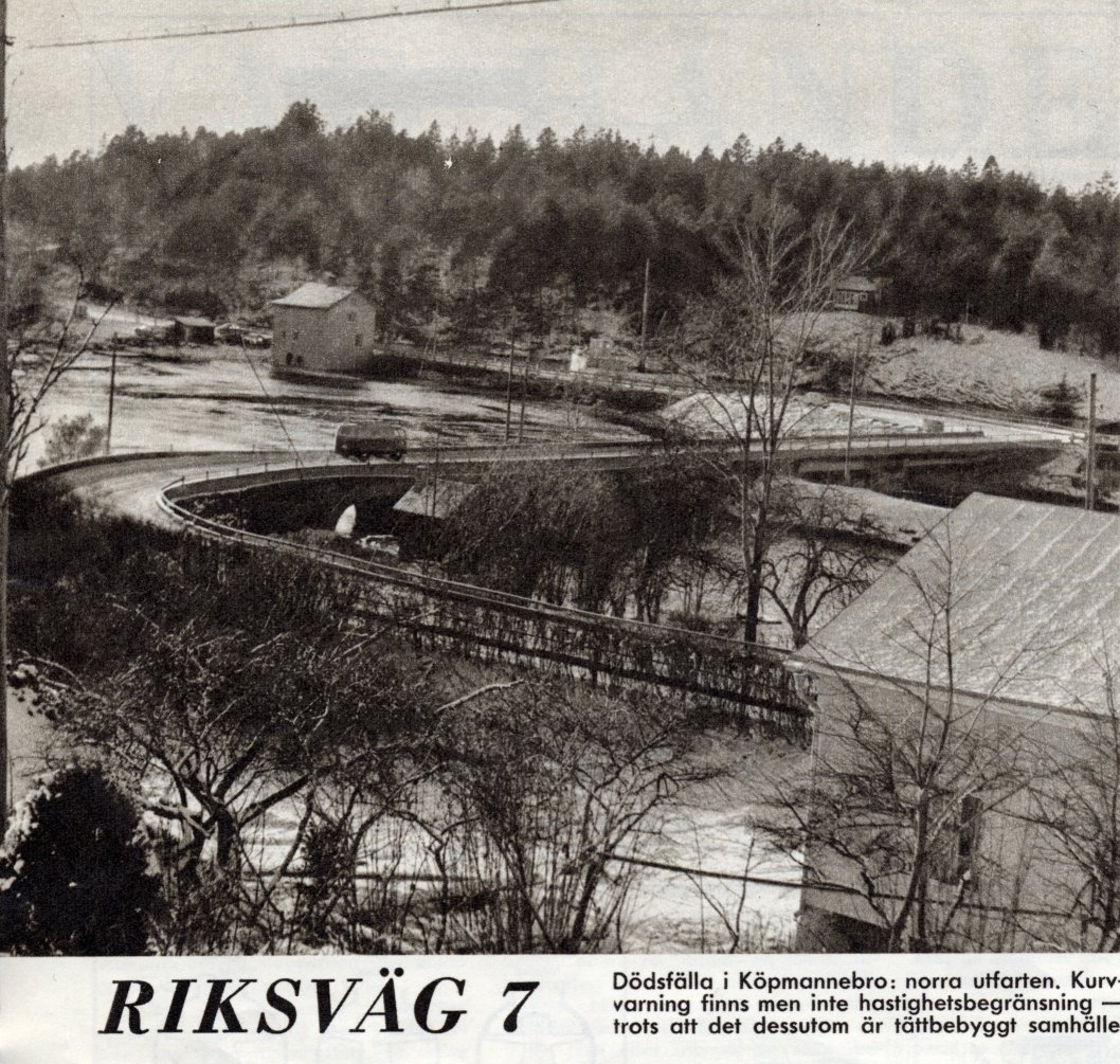 Källa: "MIL" nr 1 1958. Kan tänka mig att det knirkade i bron när tradarna passerade fullastade med gods till o från Göteborgs hamnar respektive till o från Värmlands industrier. Det var innan polisen hade lärt sig § 54 (nuv. § 106). Besöker man bron idag förundrar man sig över hur det bara var möjligt att kunna passera detta nålsöga.