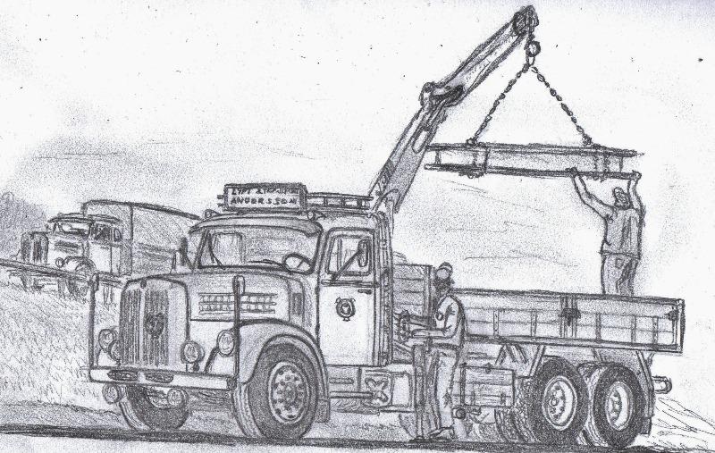 min första dag som "tradarchaffis" fyllnadssand från en STOR grop till ett järnvägspår bygge,fem lass ,endast en gång behövdes behövdes ketting :?
