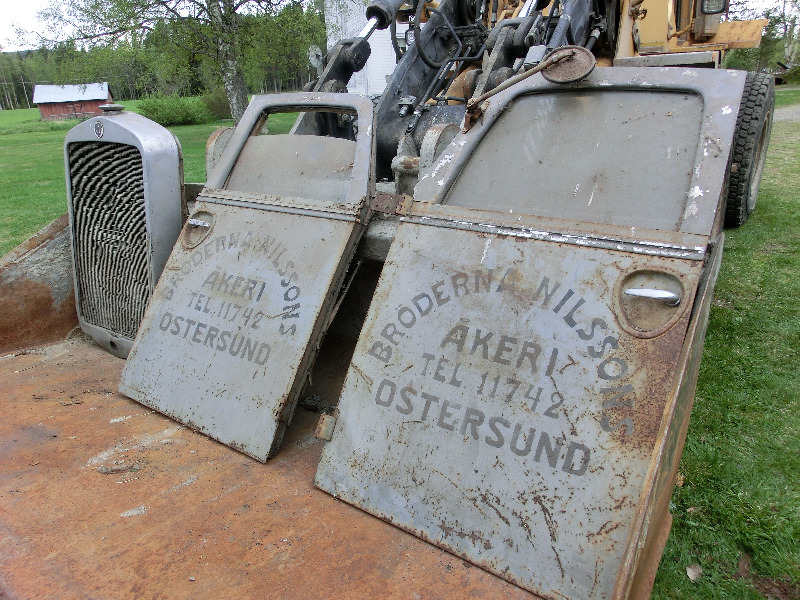 Vad jag har är ett rullande chassie med hydraulisk kedjetipp, grusflak, komplett kylare, torpedvägg, dörrar, och på dom står det : BRÖDERNA NILSSONS ÅKERI ÖSTERSUND,