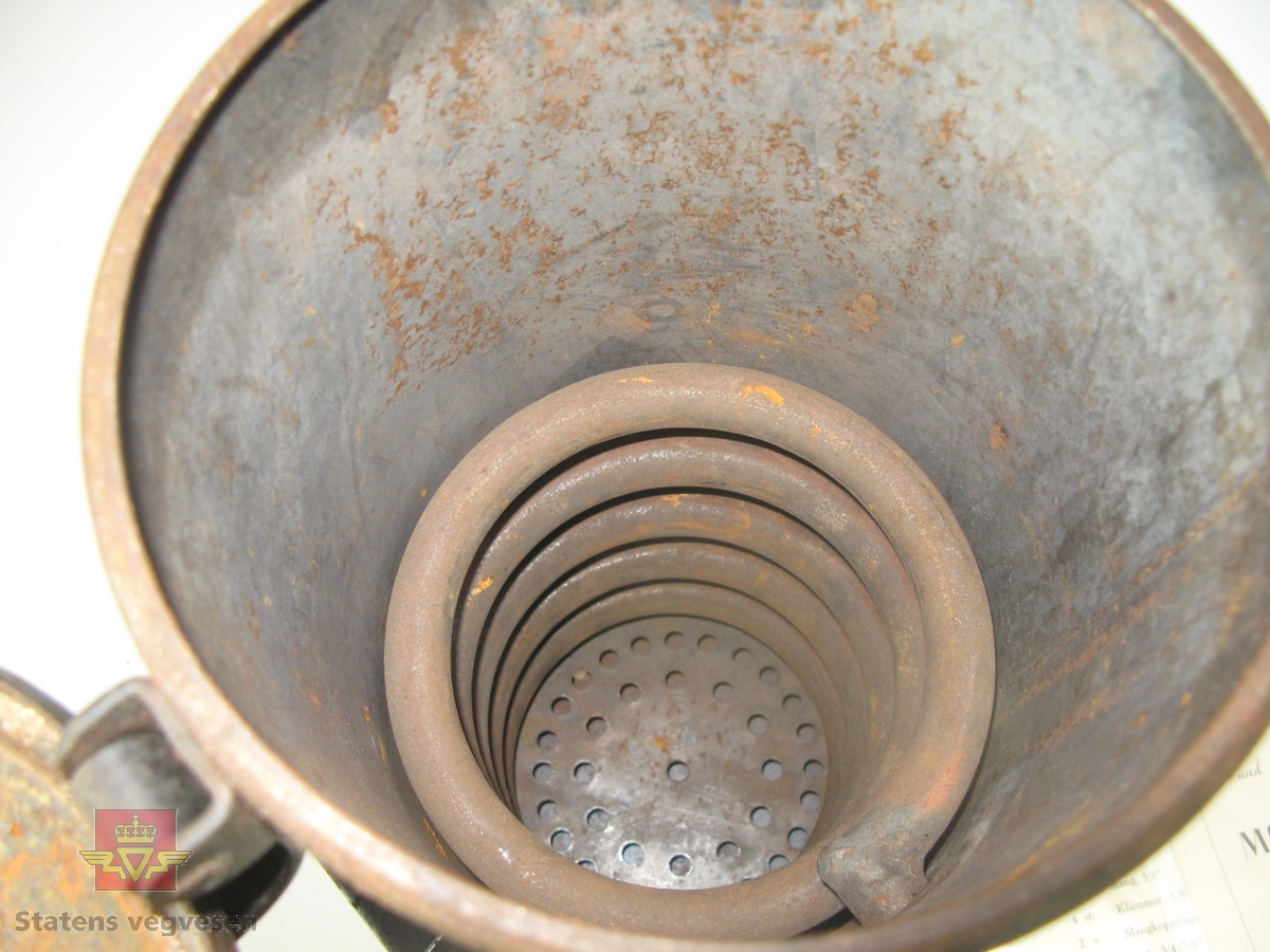Sylindrisk motorvarmer for bruk på lastebil. Varmeren fungerer som en ovn der man fyrer med ved eller trekull. Innvendig i varmeren er det en spiral der motorens kjølevæske blir varmet opp. Varmeren kobles til bilens motor via gummislanger. Ettersom kjølevæsken varmes opp vil den sirkulere.